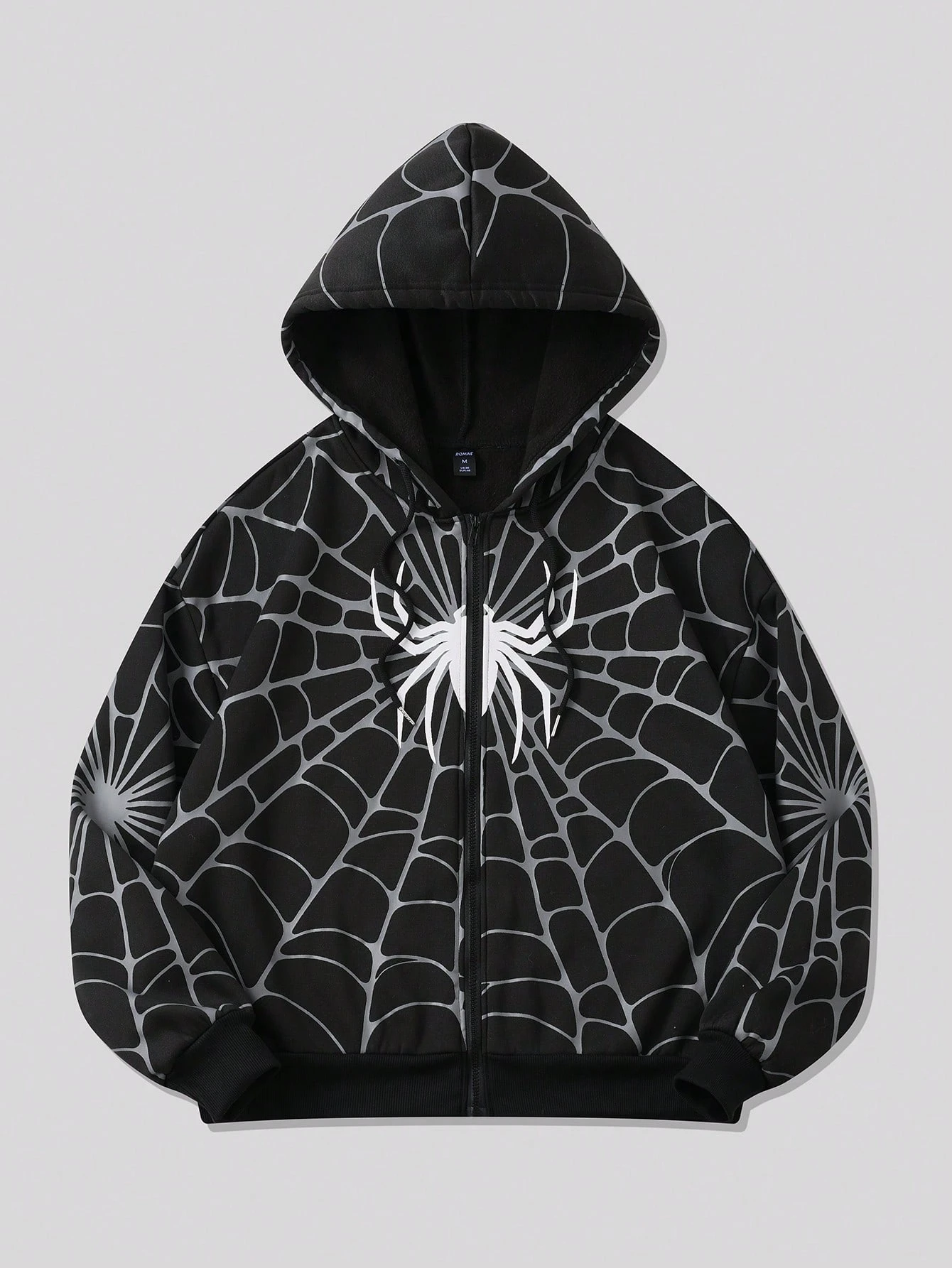Grunge Punk Sudadera con capucha oversize de hombre con estampado gráfico, de peso pesado