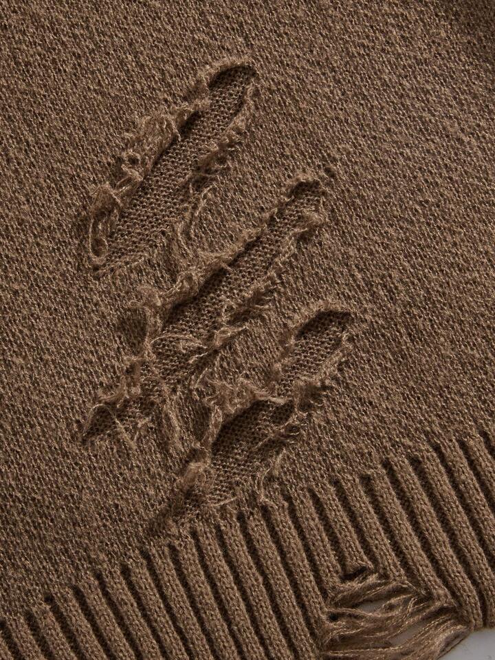 Grunge Punk Suéter Para Hombre Con Cuello Redondo Calado Y Desgastado, Adecuado Para Uso Diario En Primavera, Otoño E Invierno