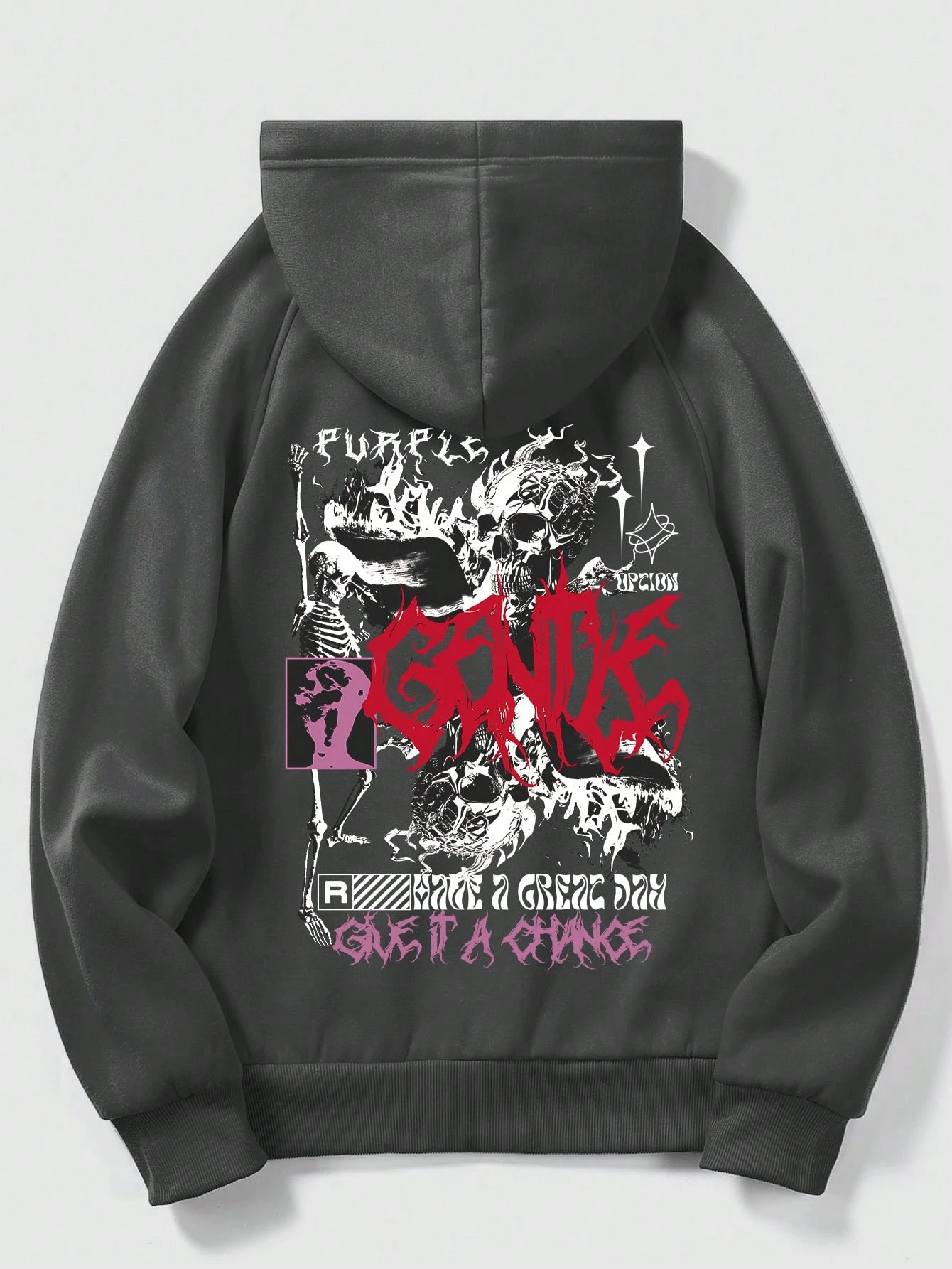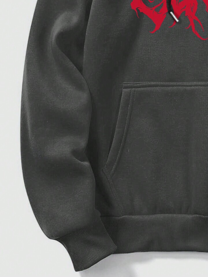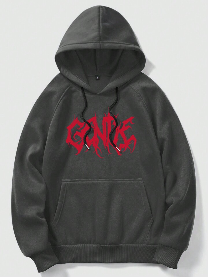 Grunge Punk Sudadera Con Capucha Y Cordón De Manga Larga Con Manga Raglán Y Estampado De Letras Para Hombres