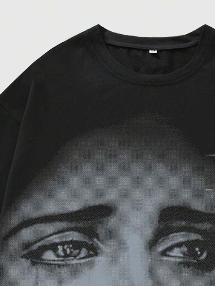 Grunge Punk Camiseta holgada con estampado de personaje, escuela