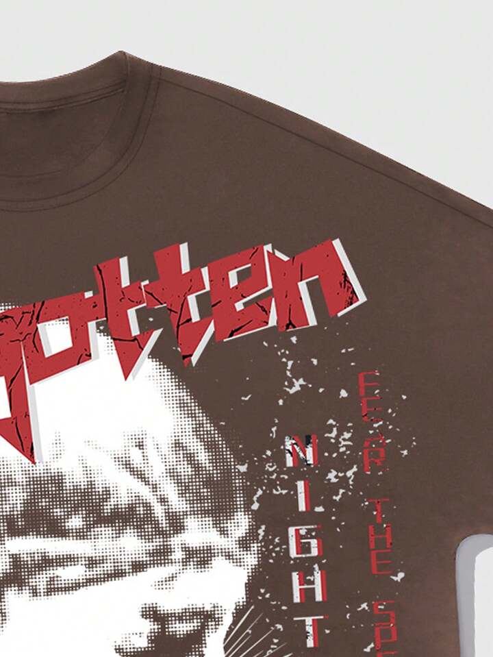 Grunge Punk Camiseta de manga corta holgada con estampado gráfico retro de calle, de verano para hombres