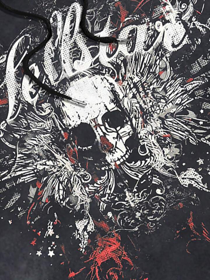 Grunge Punk Sudadera con capucha minimalista con estampado de calavera para hombre, de uso casual para el día a día