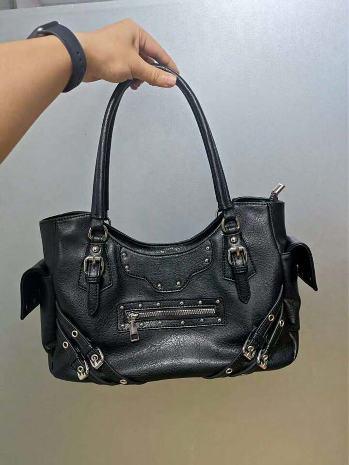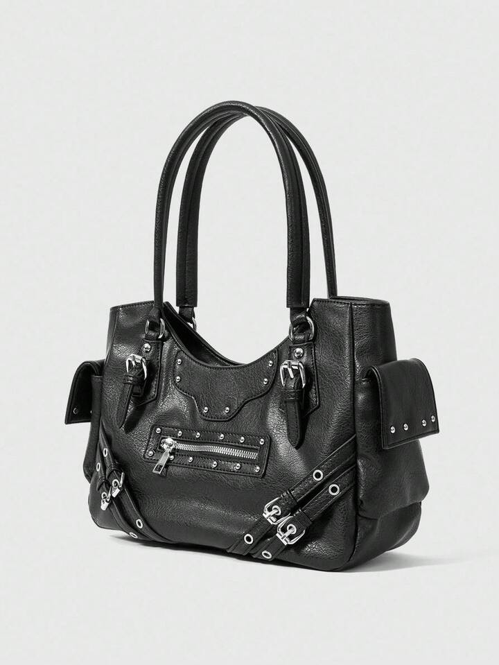 Grunge Punk Bolso de mano de mujer con múltiples bolsillos