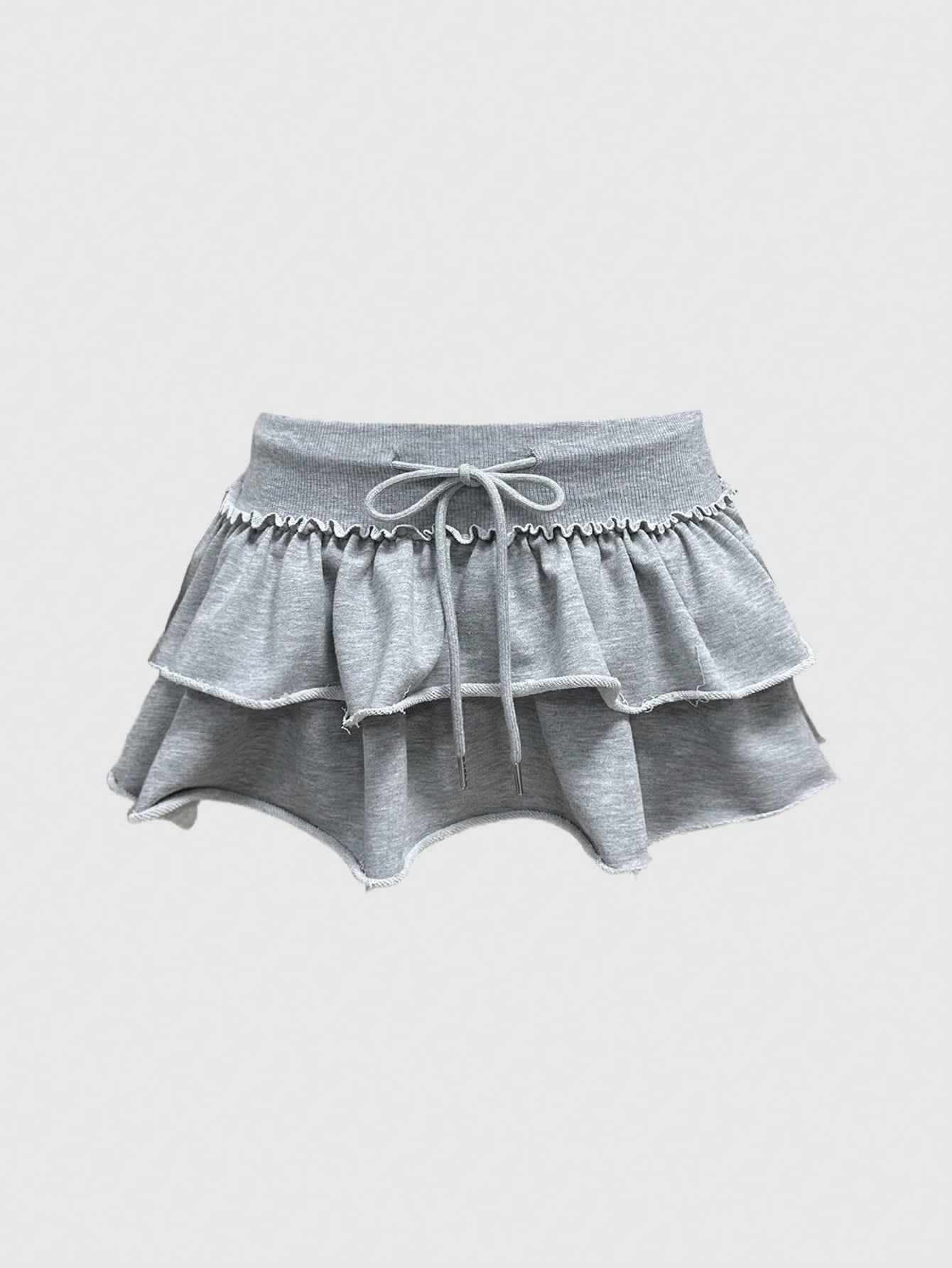 Grunge Punk Minifalda con vuelos y cintura baja confeccionada en tela de sudadera desgastada, para mujer, estilo festival de música