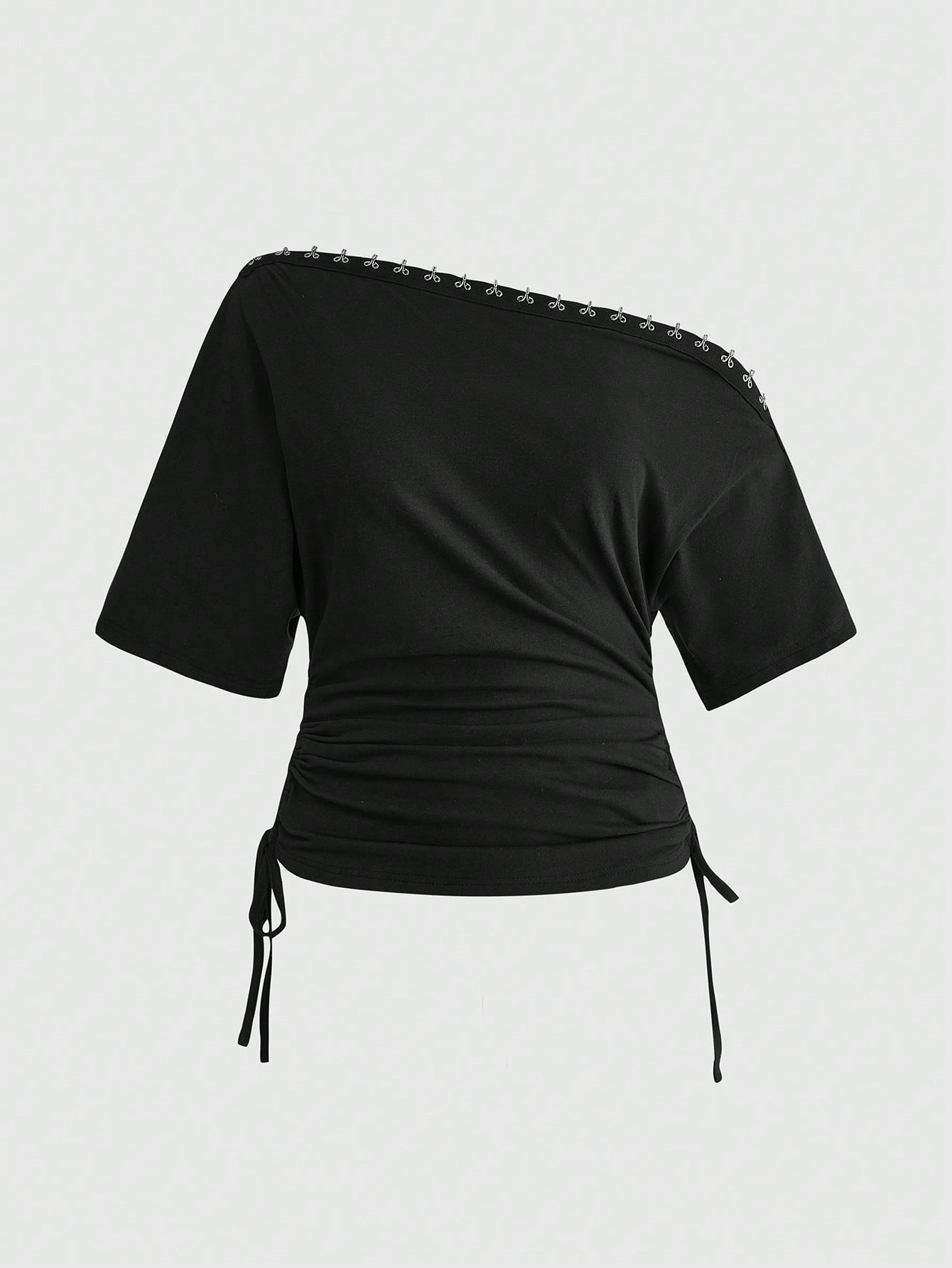 Grunge Punk Camiseta ajustada y fruncida para mujer con hebilla asimétrica de hombro estilo punk metal para festival de música