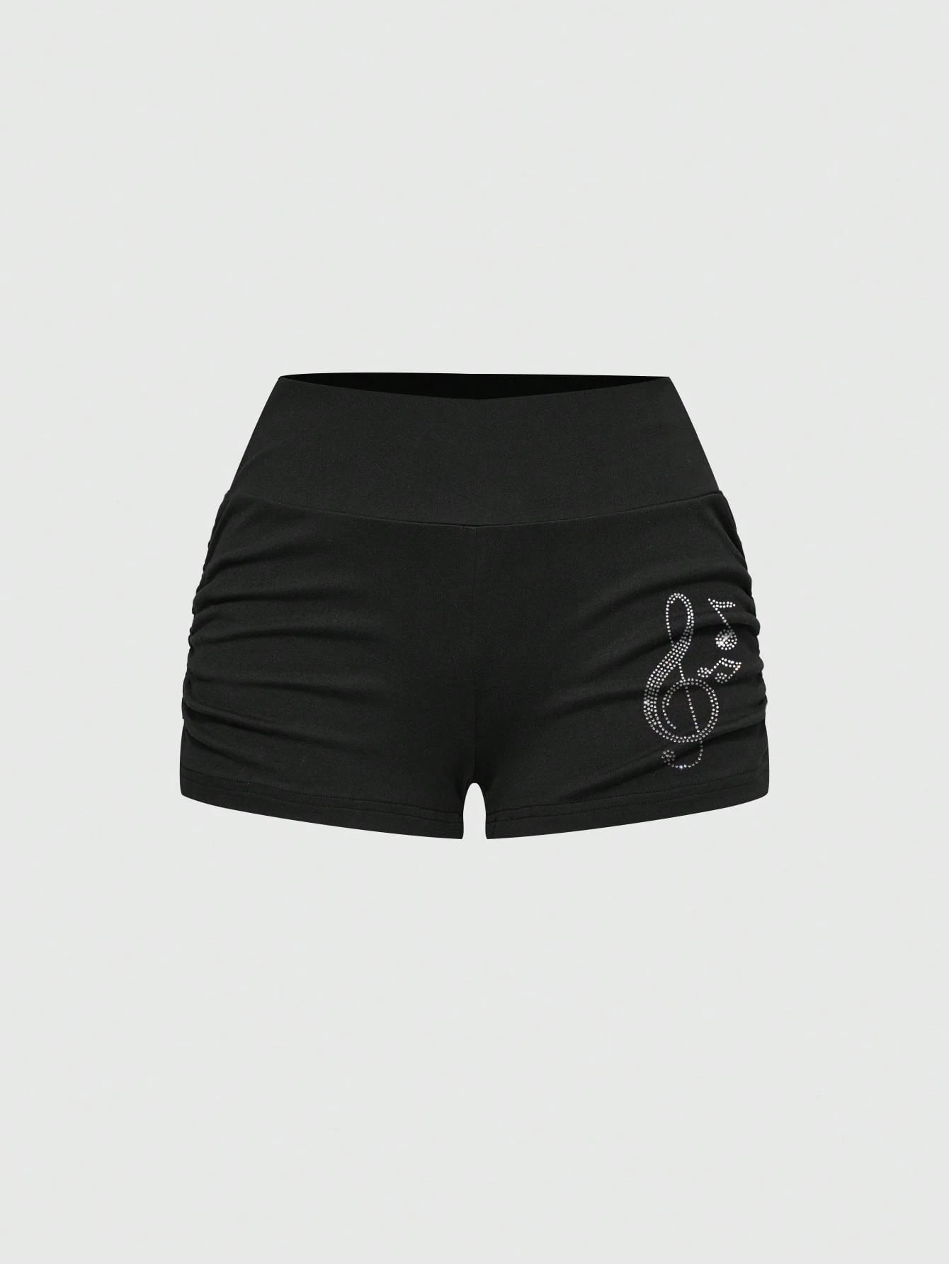 Grunge Punk Shorts mini de cintura súper baja con pliegues, con nota de cristal, estilo punk para festival de música