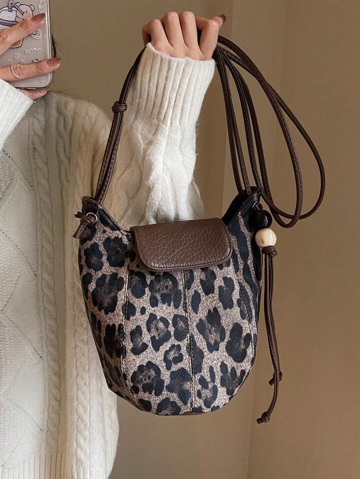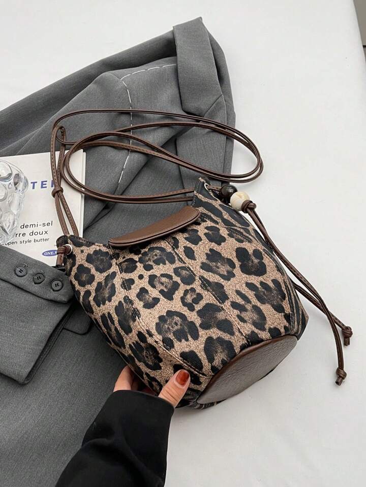Grunge Punk Nuevo bolso de hombro, bandolera y tipo cubo casual y elegante con estampado de leopardo para mujer