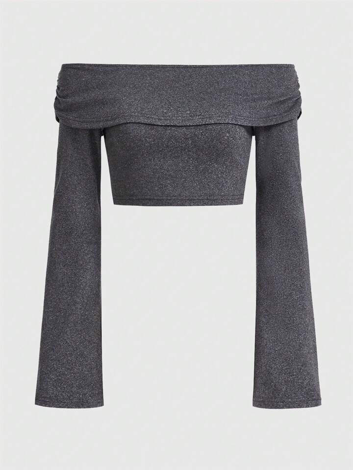 Grunge Punk Camiseta crop de hombros descubiertos manga de campana