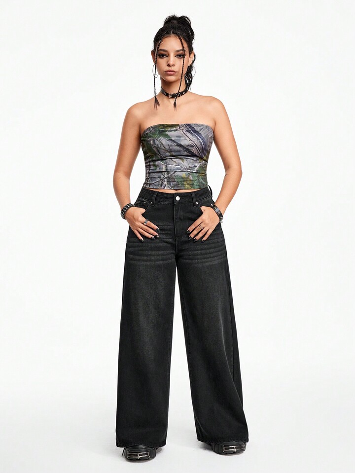 Grunge Punk Jeans holgados con bolsillo trasero, decorado con bordado y rhinestones para mujeres