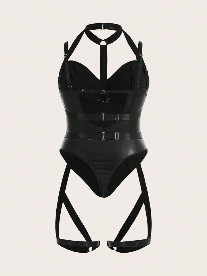 Grunge Punk Talla grande Body teddy PU arnés con liga