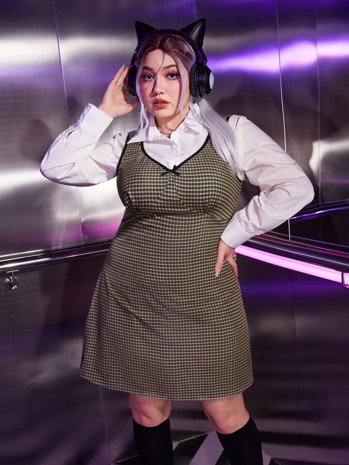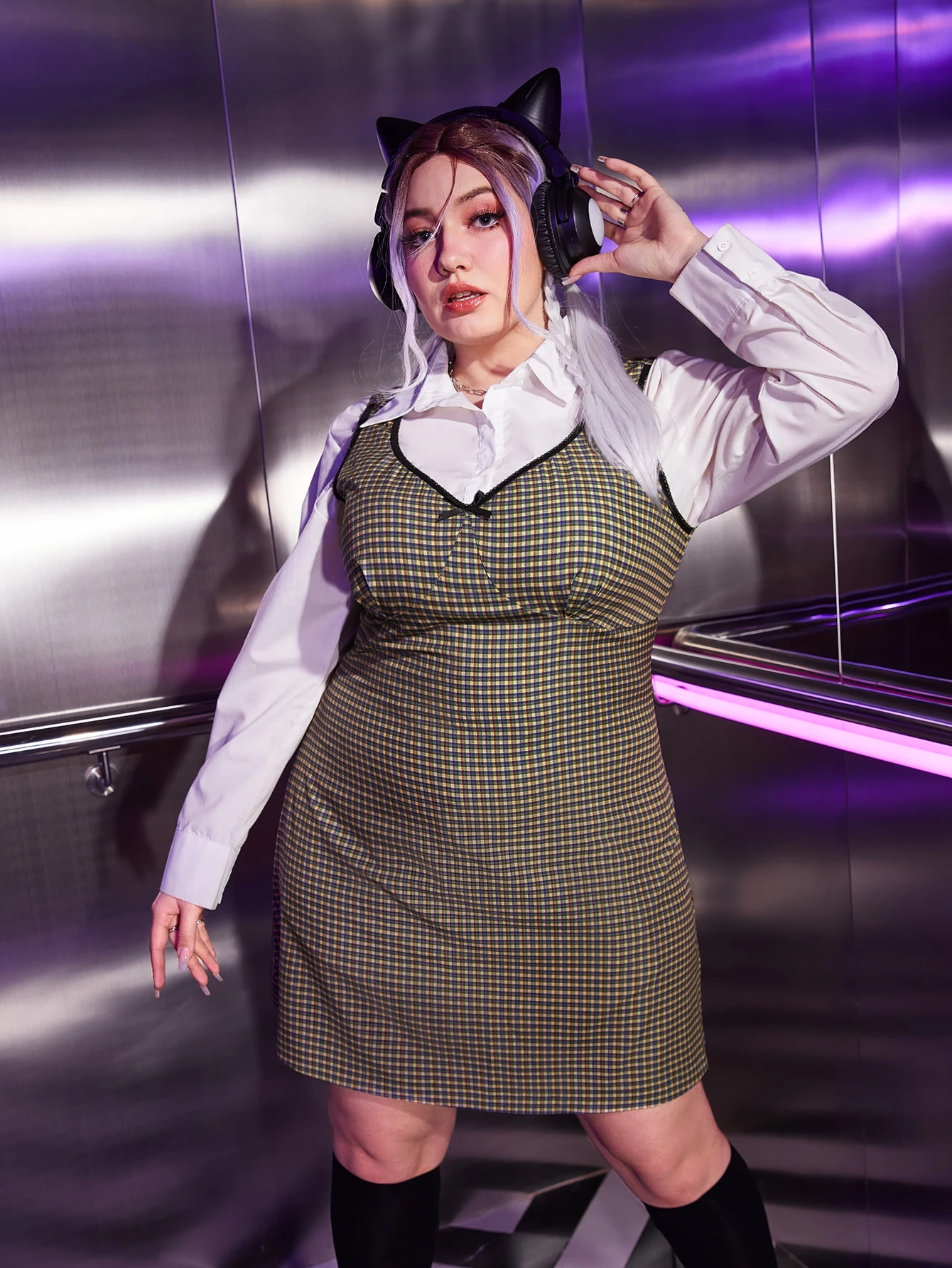 Grunge Punk Vestido tank con estampado de cuadros sin camisa