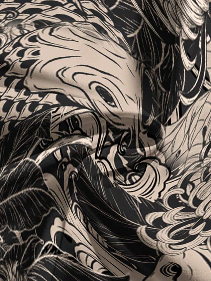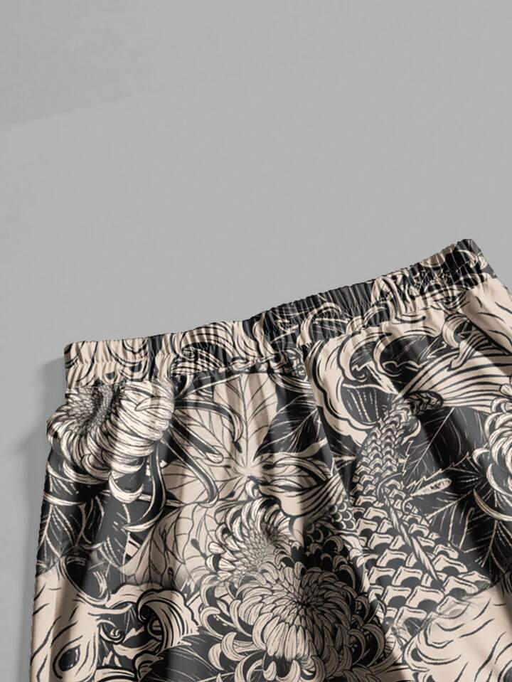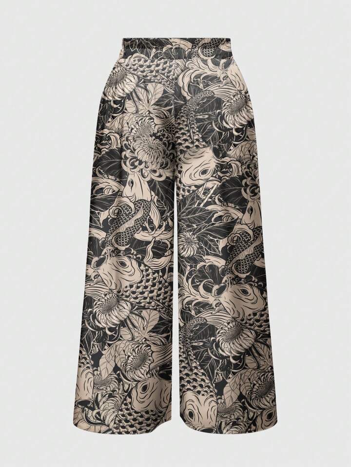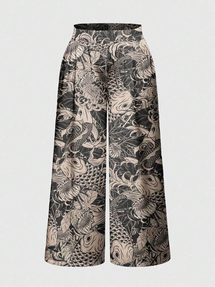 Grunge Punk Pantalones anchos y sueltos de talla grande con estampado de peces de pintura de tinta china