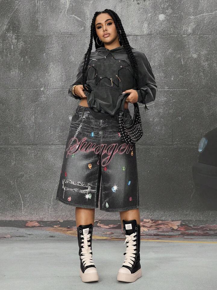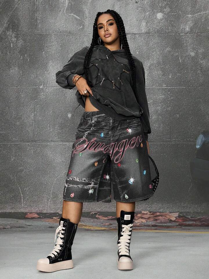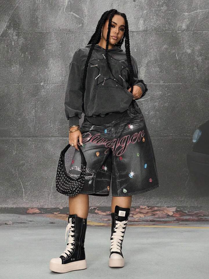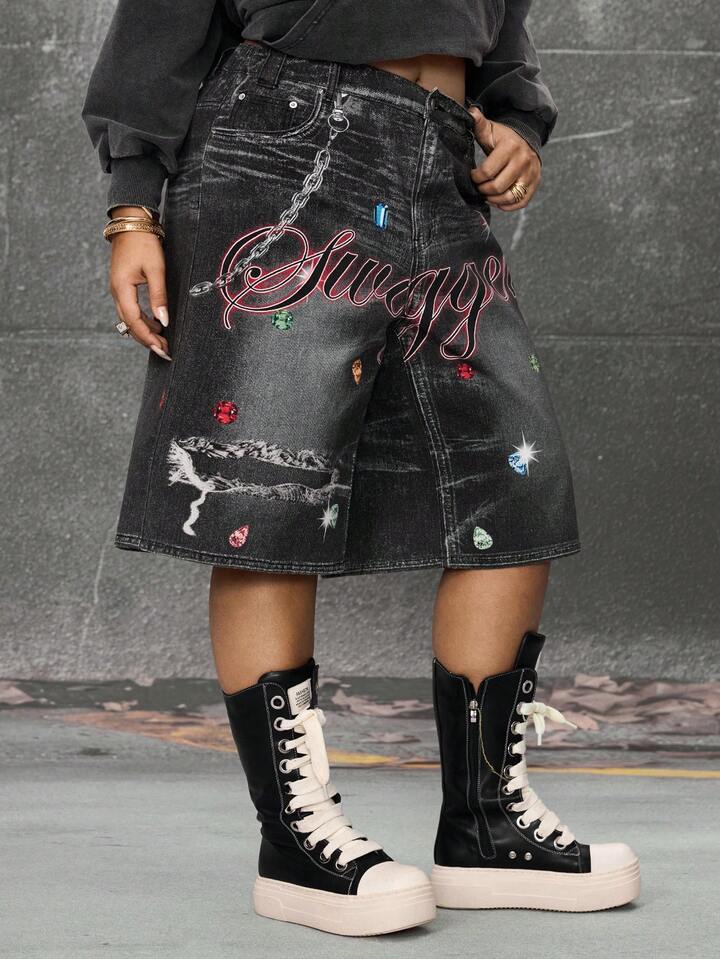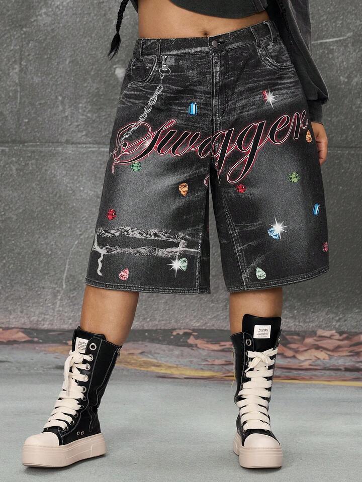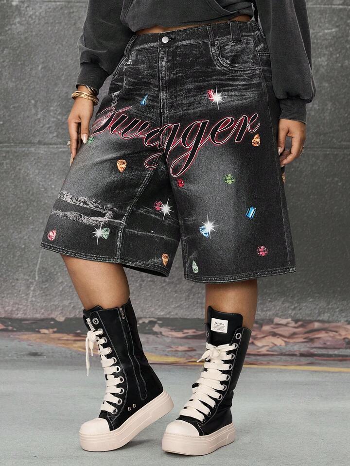 Grunge Punk Jeans anchos y sueltos de estilo casual para hombres de talla grande, moda callejera