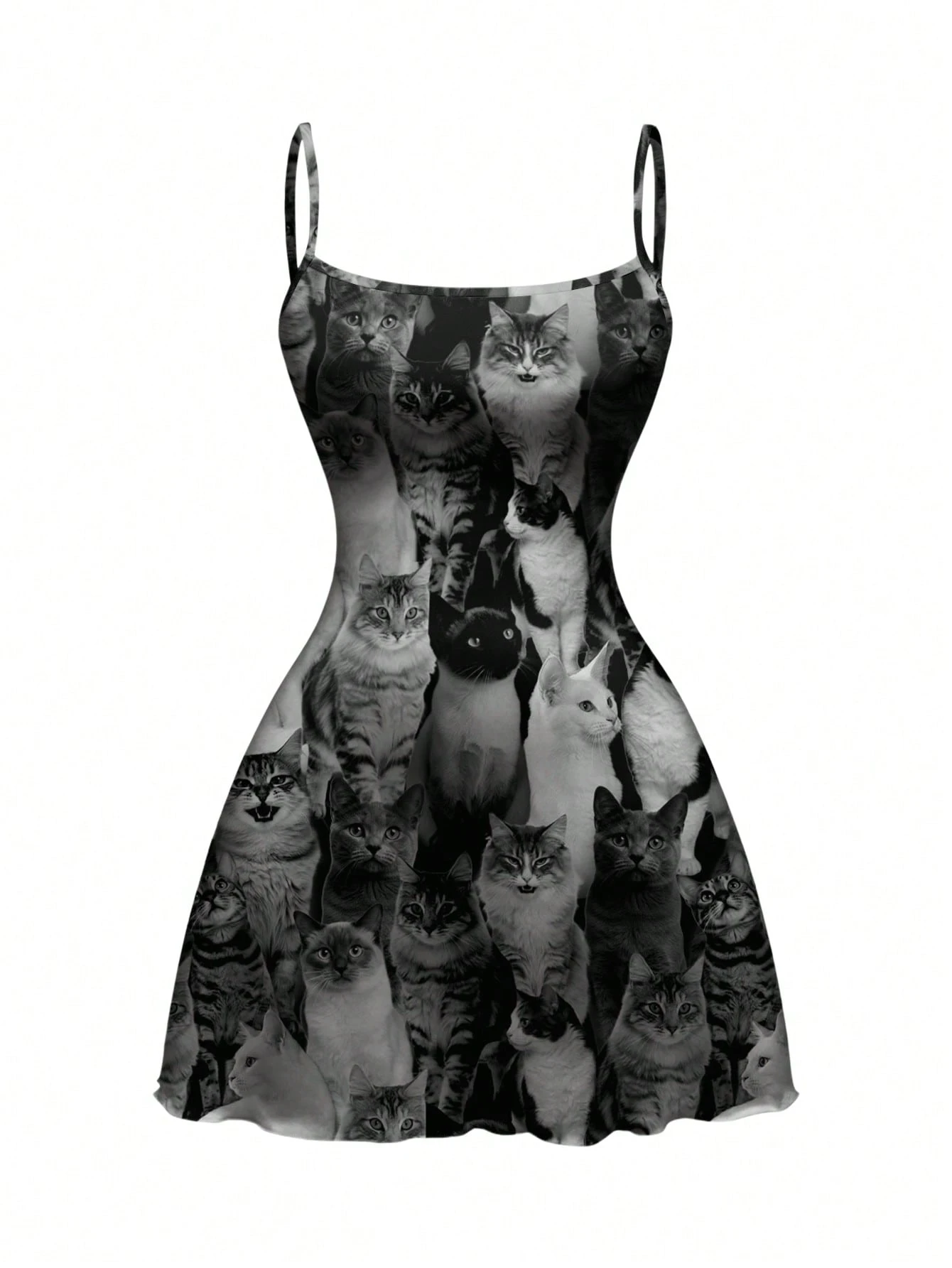 Grunge Punk Vestido de tirantes sexy con estampado completo de gato Siam para festival de música punk de talla grande