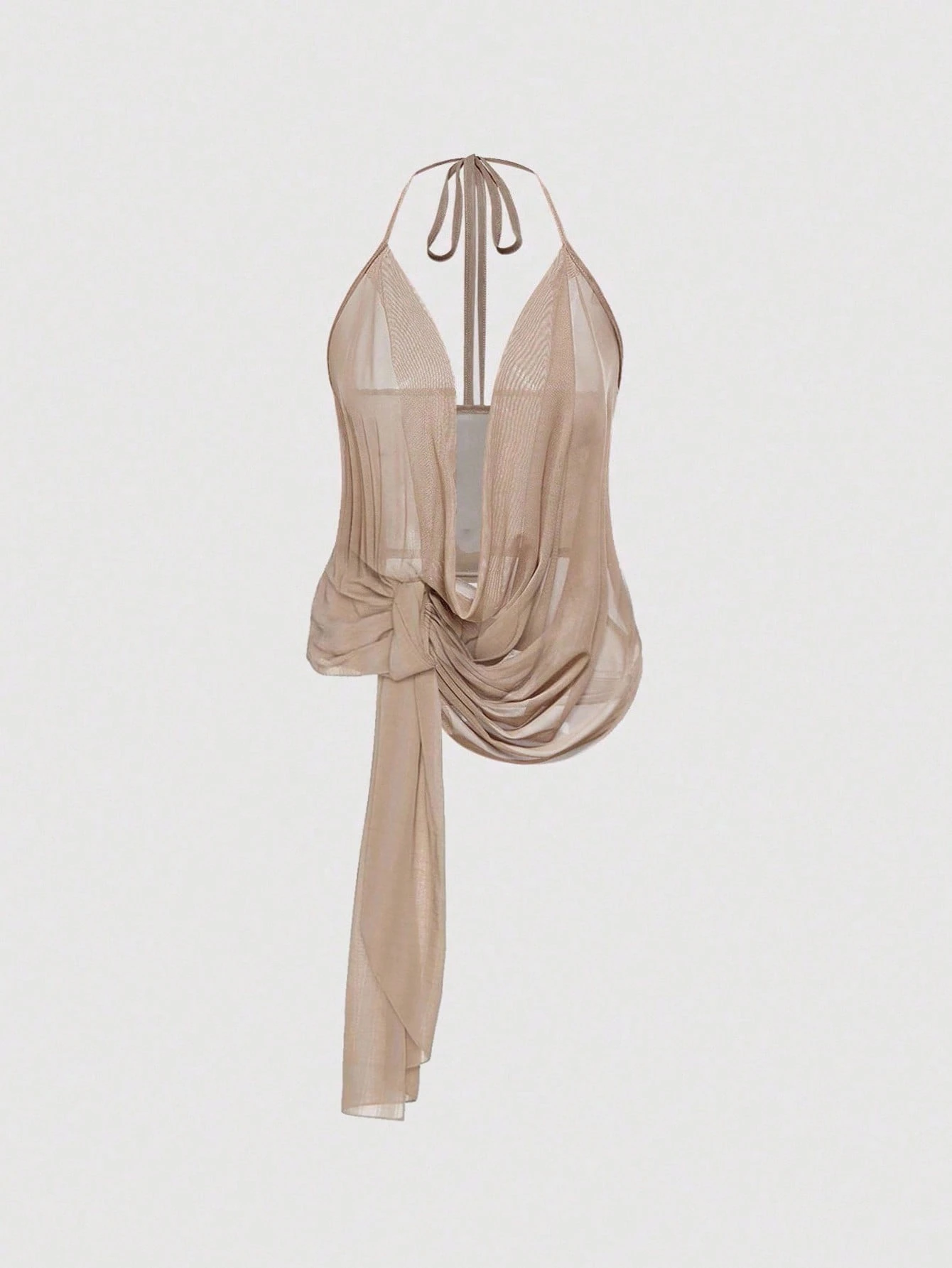 Grunge Punk Top con escote pronunciado y espalda descubierta, apropiado para festivales de música, moderno y atrevido, tallas grandes para mujeres