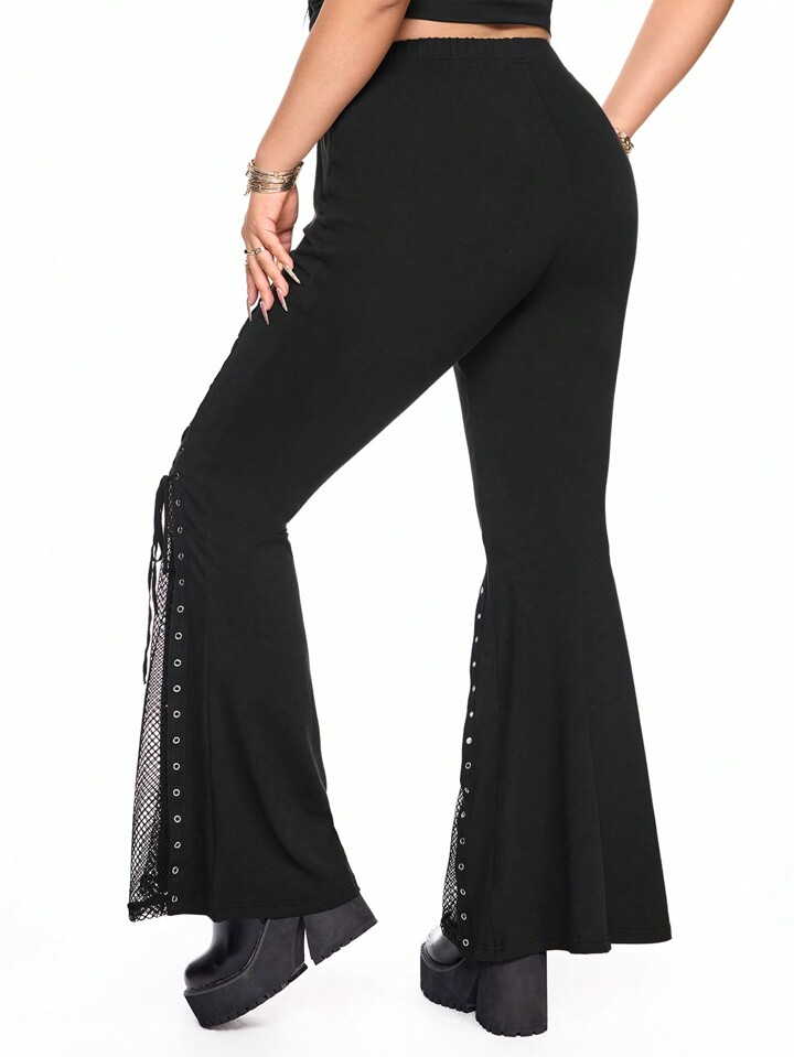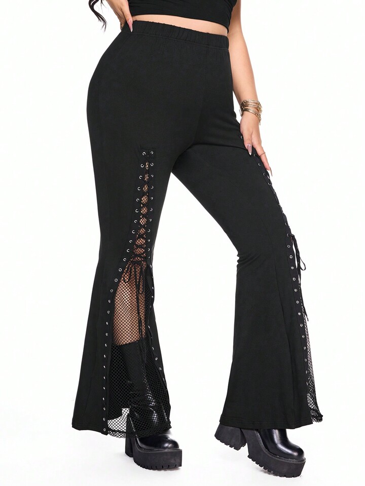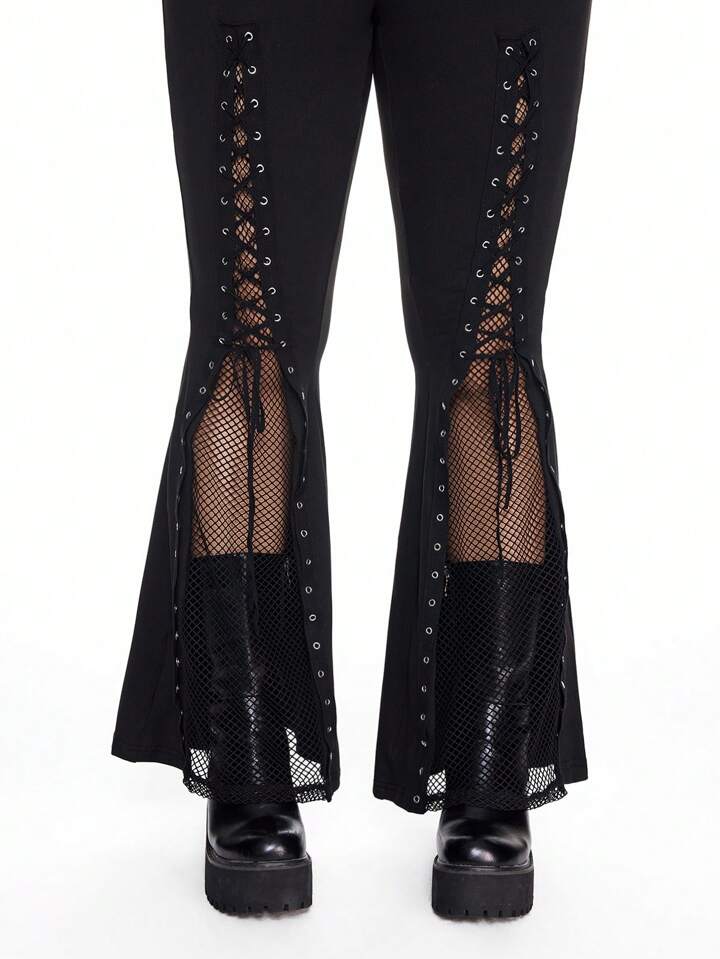 Grunge Punk Pantalones anchos de 2 en 1 con cordones al estilo vintage, punk y gótico para mujer de talla grande