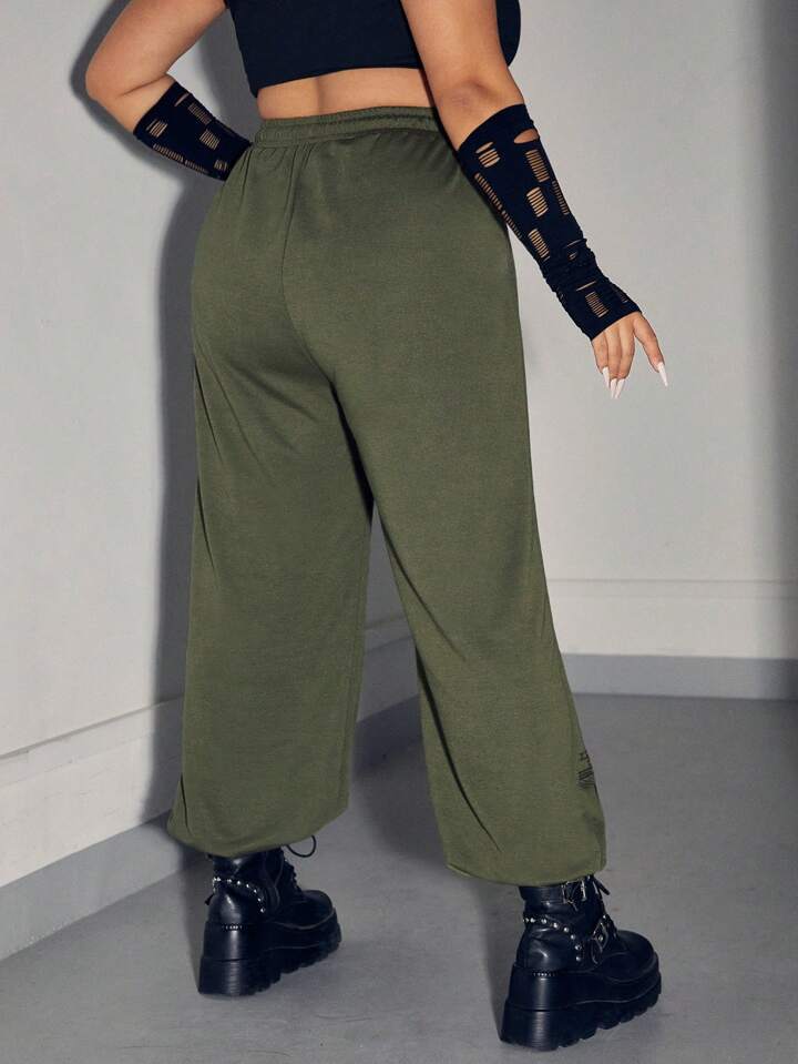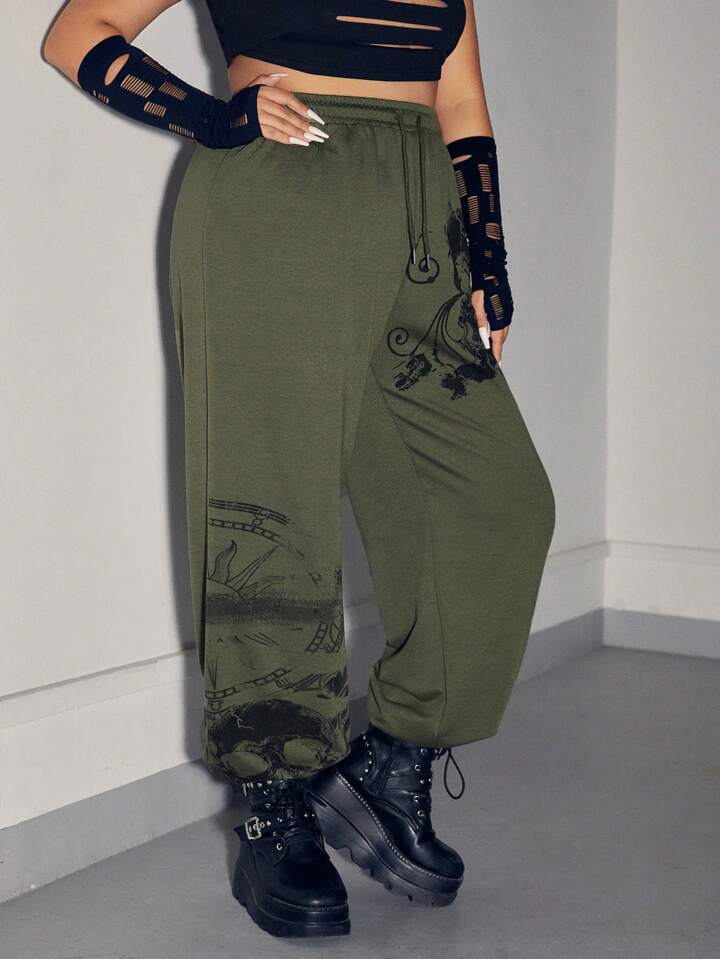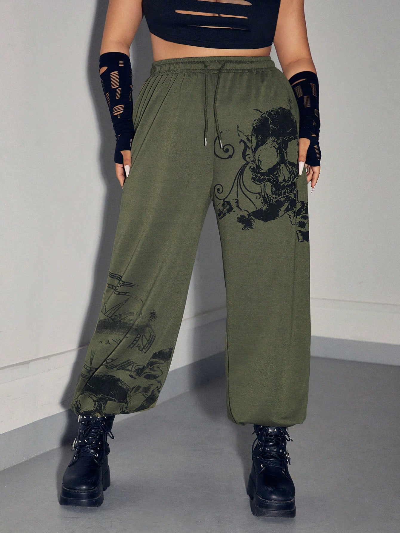 Grunge Punk Pantalones deportivos estampado de cráneo de cintura con cordón