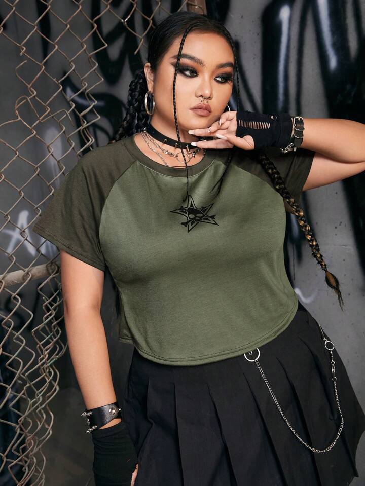 Grunge Punk Camiseta de cráneo & con estampado de estrella de manga raglán
