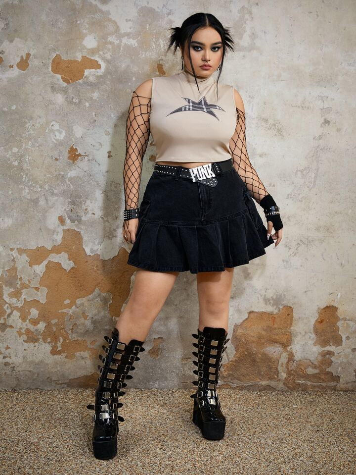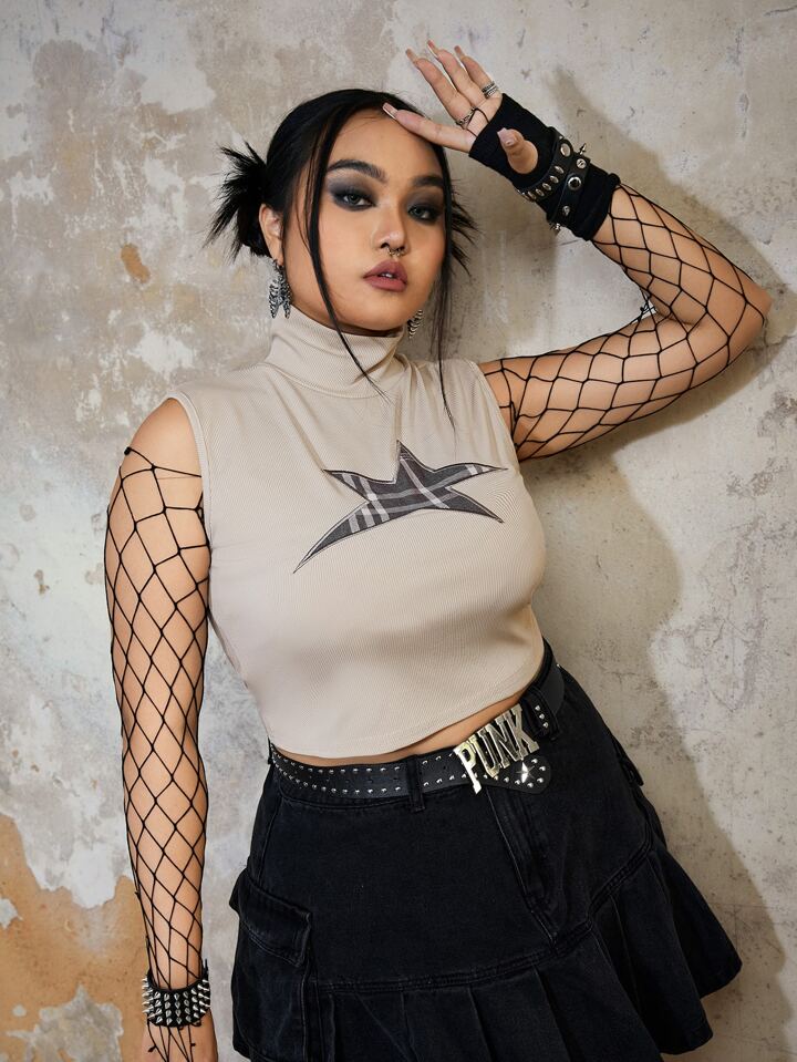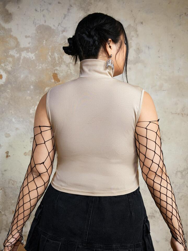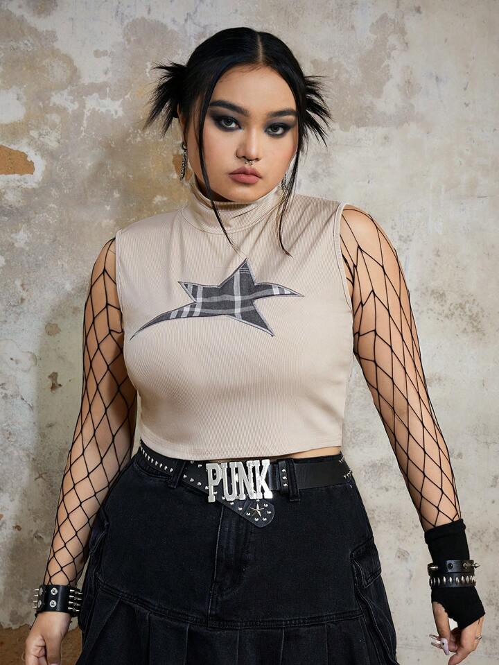 Grunge Punk Top de tirantes de talla grande Bordado Canalé Geométrico Casual