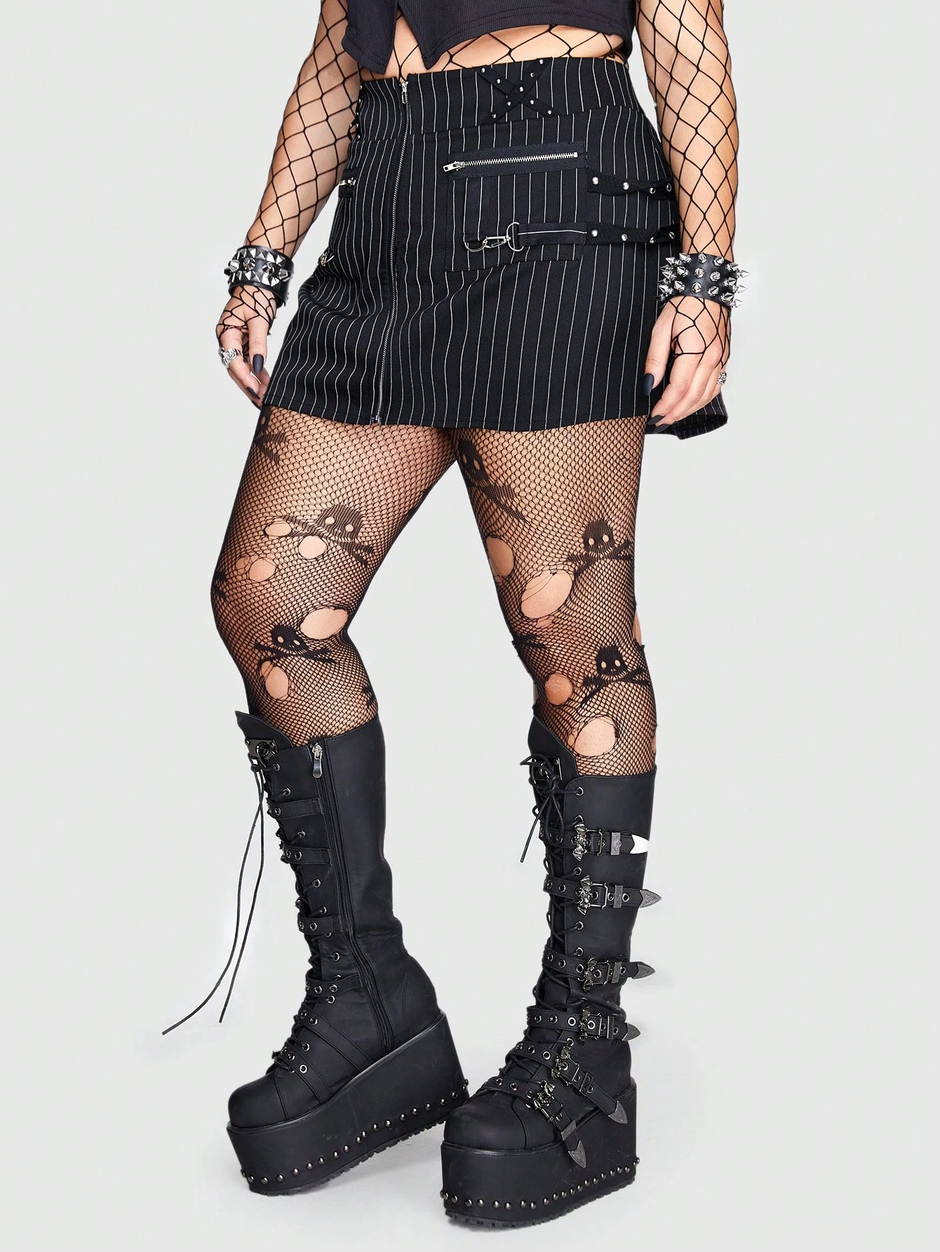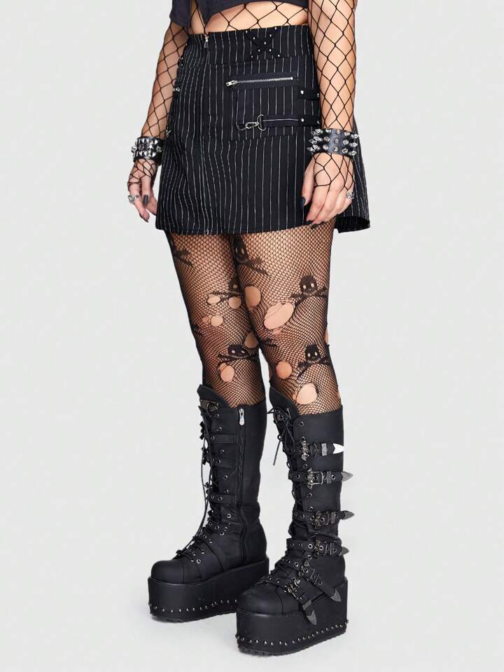 Grunge Punk Talla grande Falda con estampado de rayas con diseño de cremallera