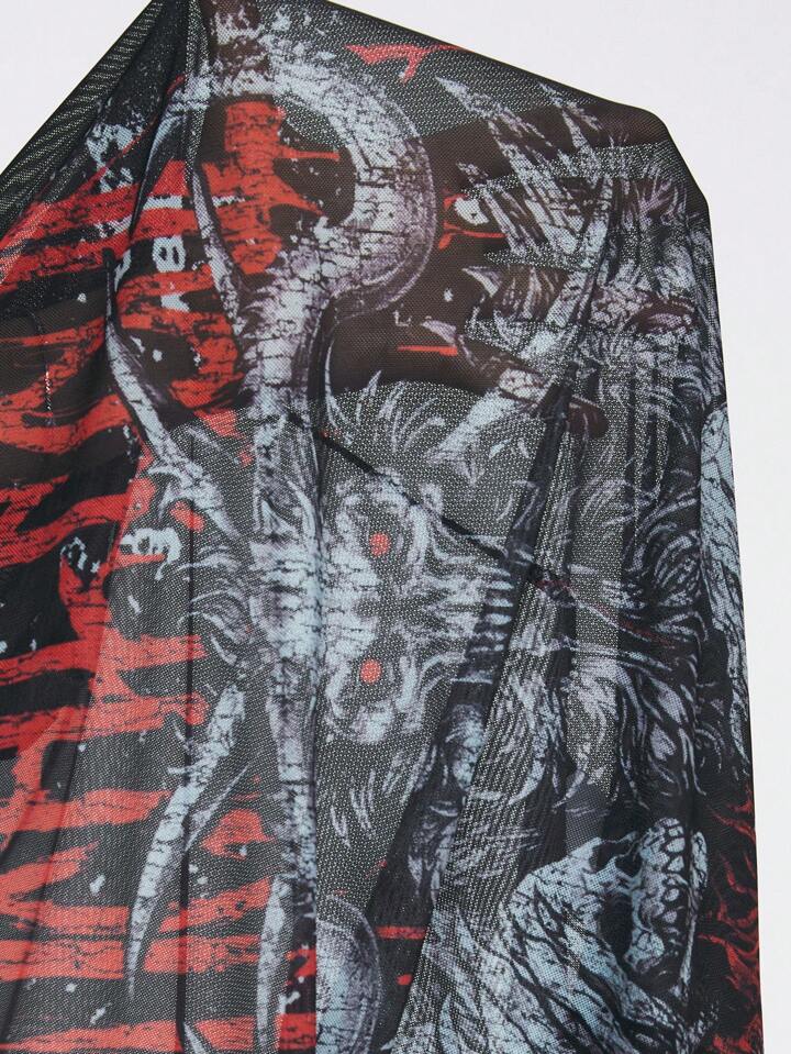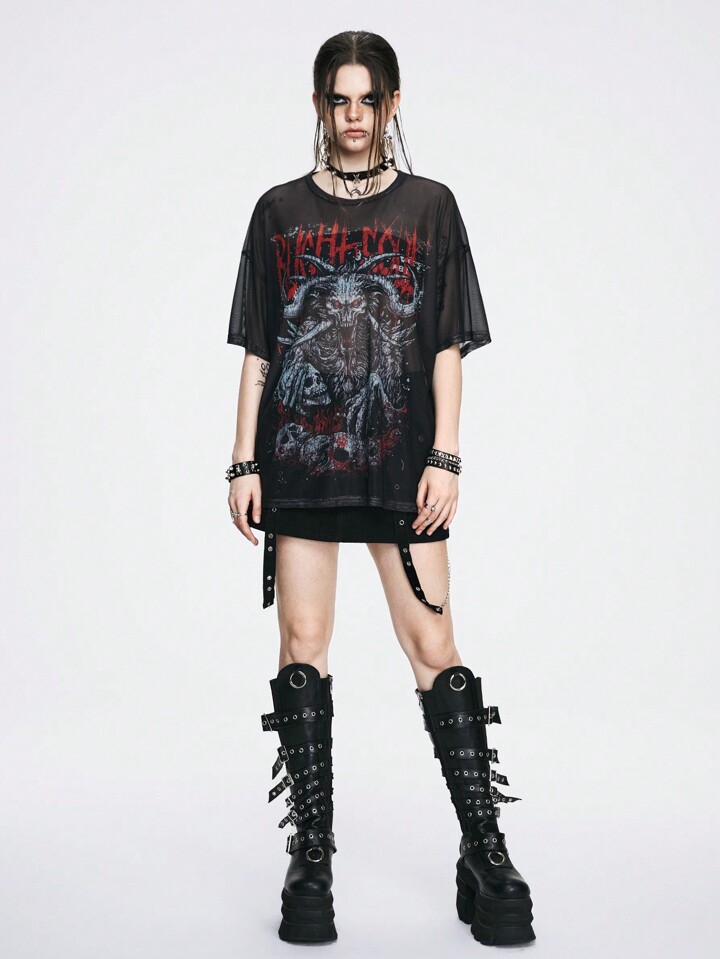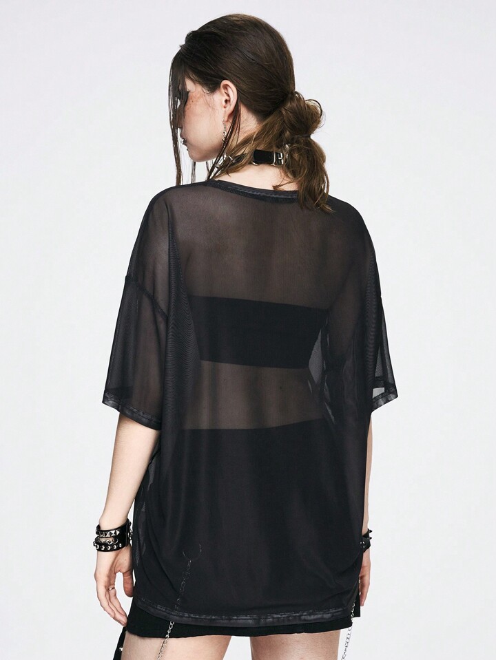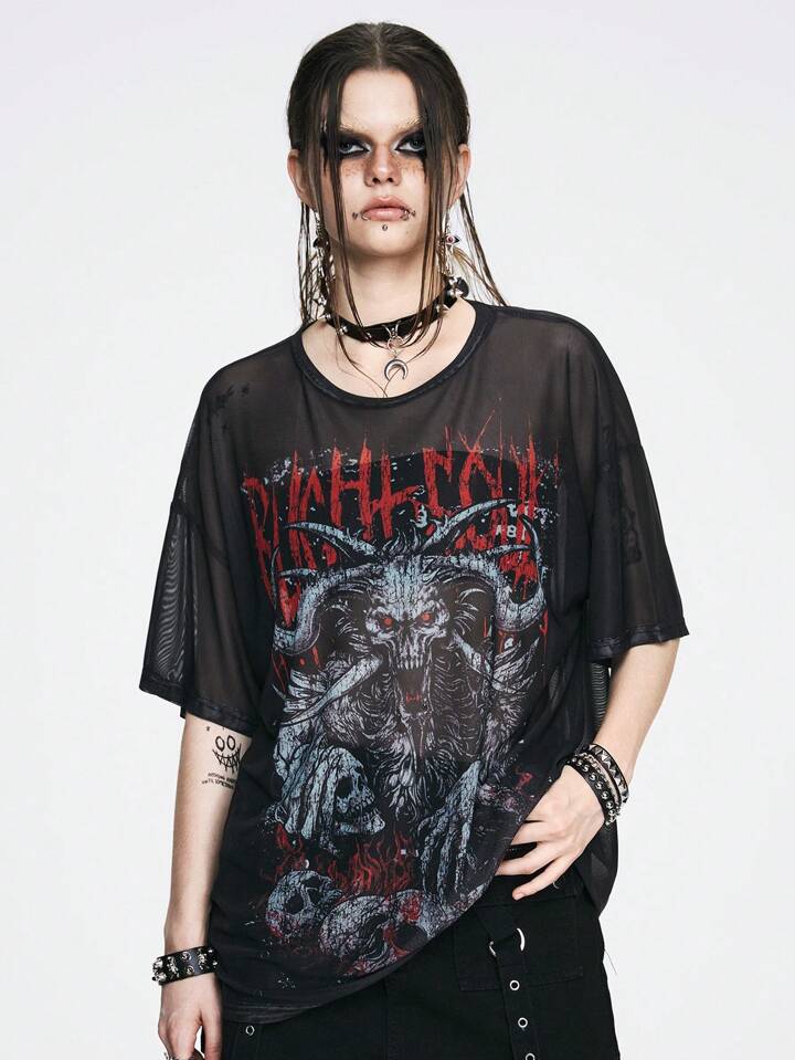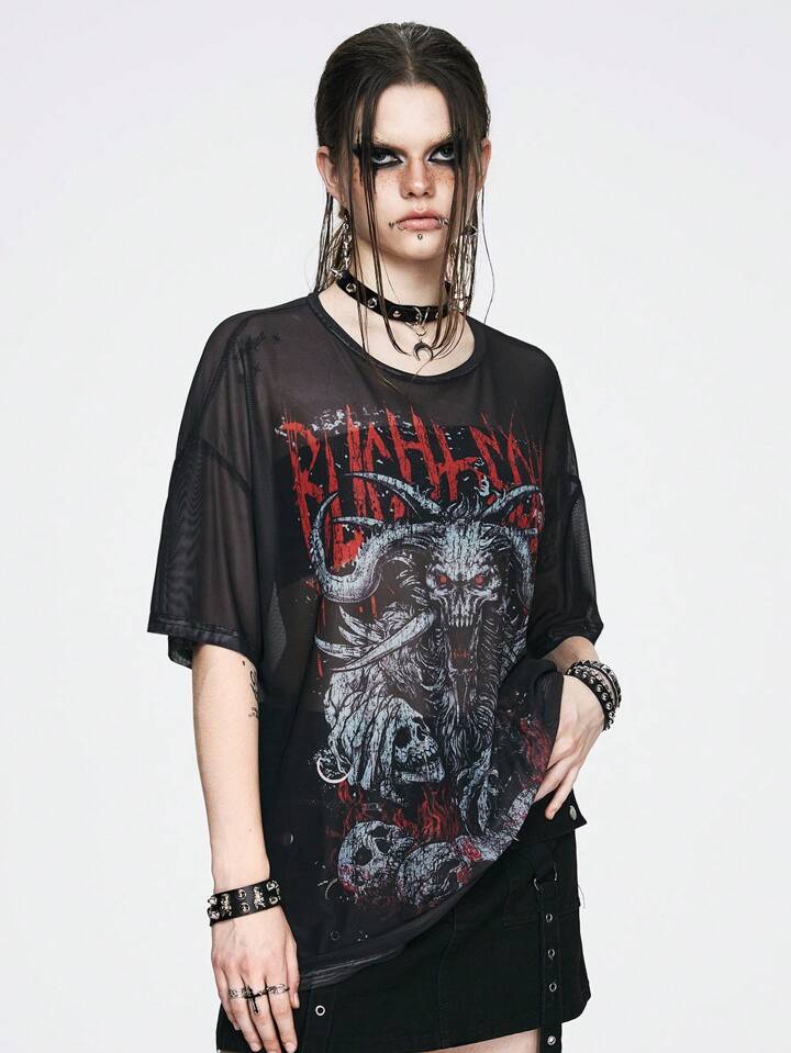Grunge Punk Camiseta holgada de mujer transparente con estampado de calavera punk, escolar