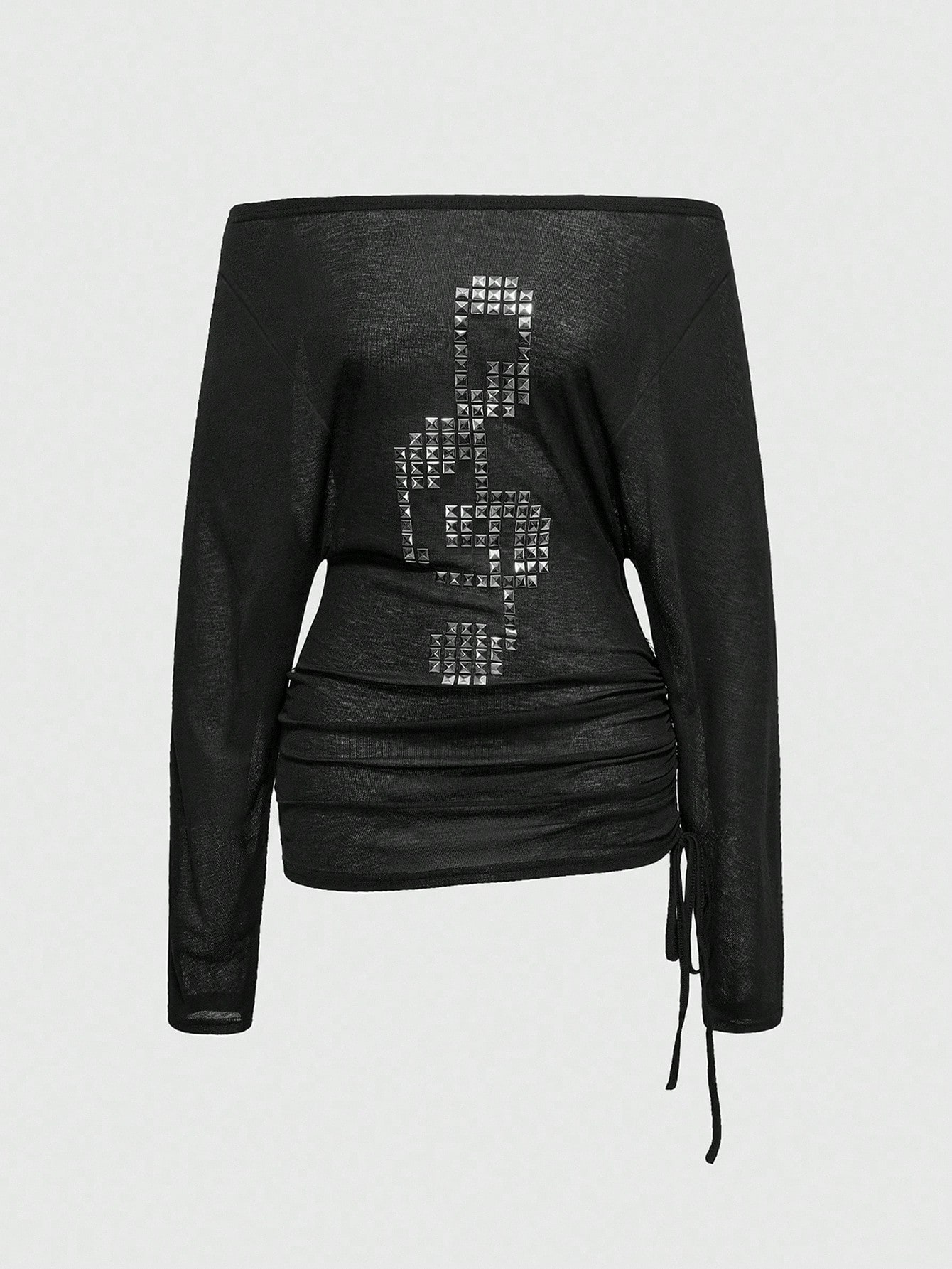 Grunge Punk Camiseta de manga larga con hombros descubiertos, estilo punk con remaches en forma de cruz, talla grande para mujer