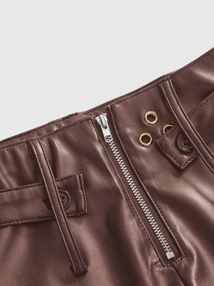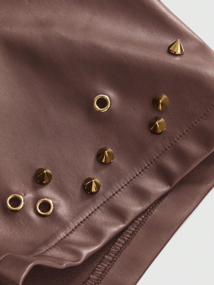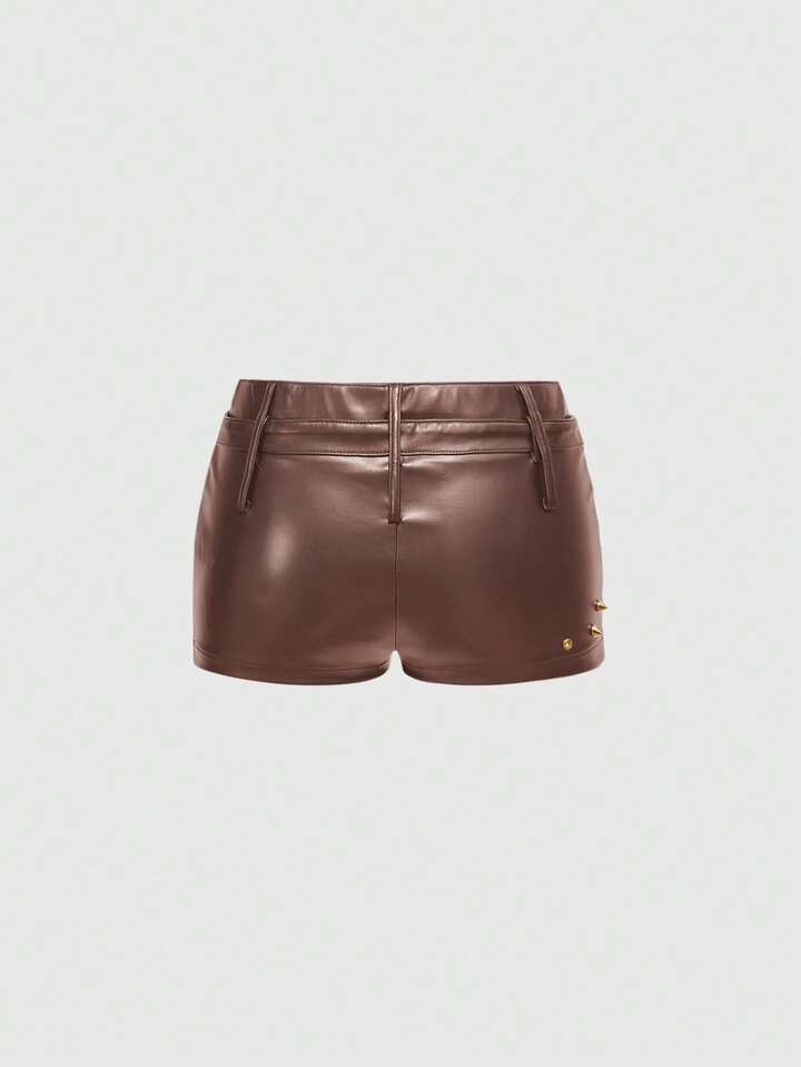 Grunge Punk Shorts mini de piel sintética de cintura ultra baja, estilo punk con remaches metálicos y sexy