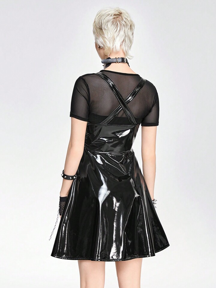 Grunge Punk Vestido de línea A con estilo punk y dobladillo acampanado y tirantes cruzados para mujer