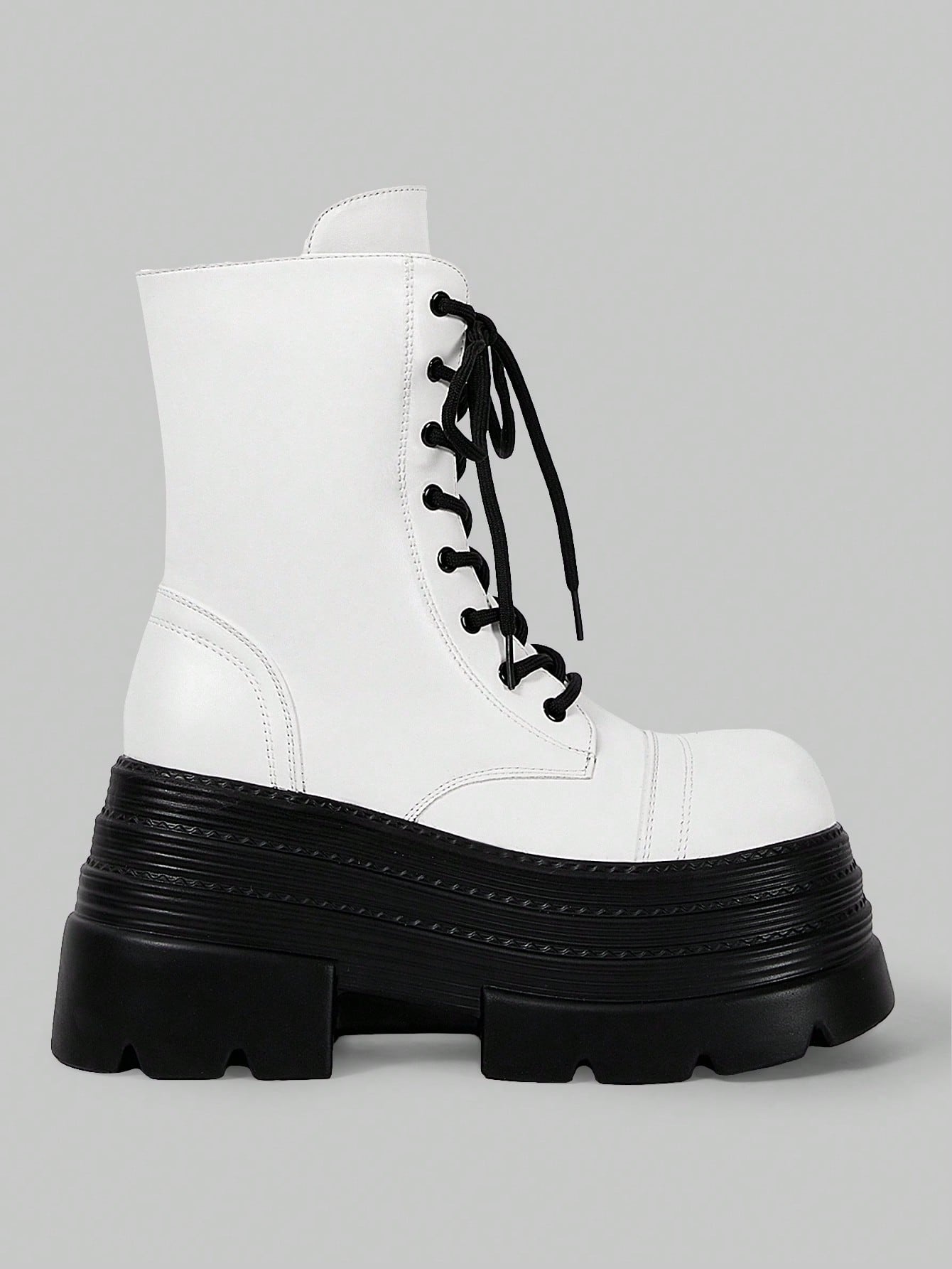 Grunge Punk Botas de media caña de PU con suela gruesa y puntera redonda, estilo punk. Uso casual para la calle y el campus