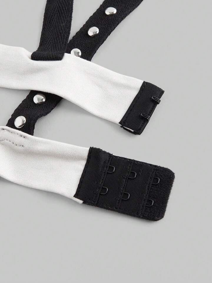 Grunge Punk Top corto de tirantes con esqueleto, cruz y remaches en estilo punk para mujeres