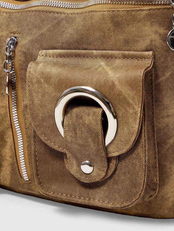 Grunge Punk Bolso de hombro cruzado de mujer con estilo retro desgastado, de alta capacidad