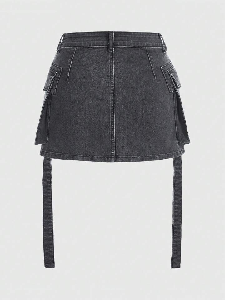 Grunge Punk Minifalda de mezclilla con parche de patrón de estrella retro desgastado para mujer de talla grande