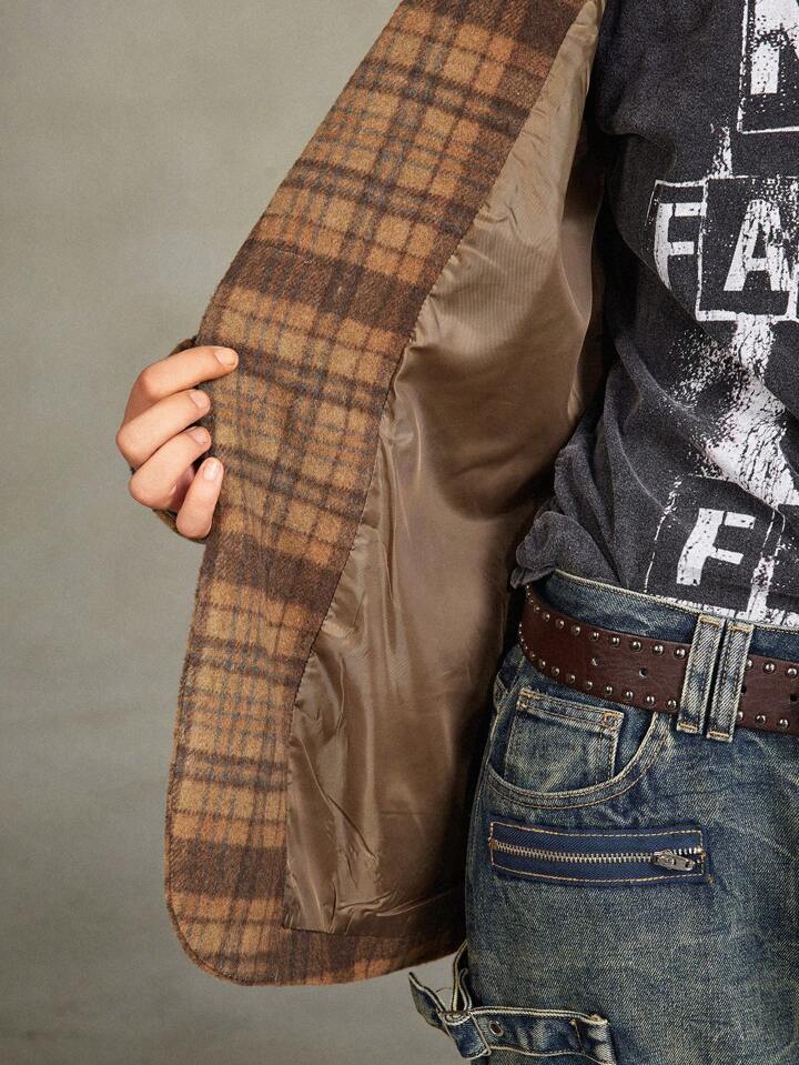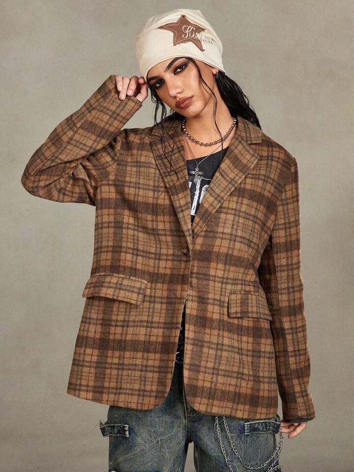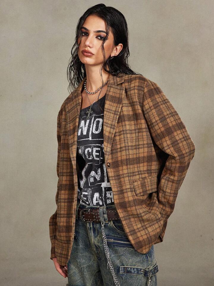 Grunge Punk Blazer casual de mujer con estampado de cuadros retro para otoño/invierno