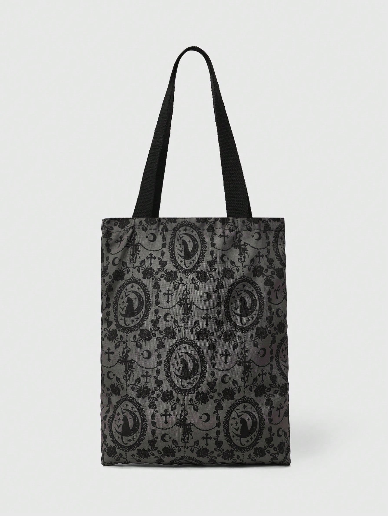 Grunge Punk Bolsa de lona reutilizable con estampado de ojo/luna/estrella en todo el diseño, bolsa de hombro adecuada para ir de compras