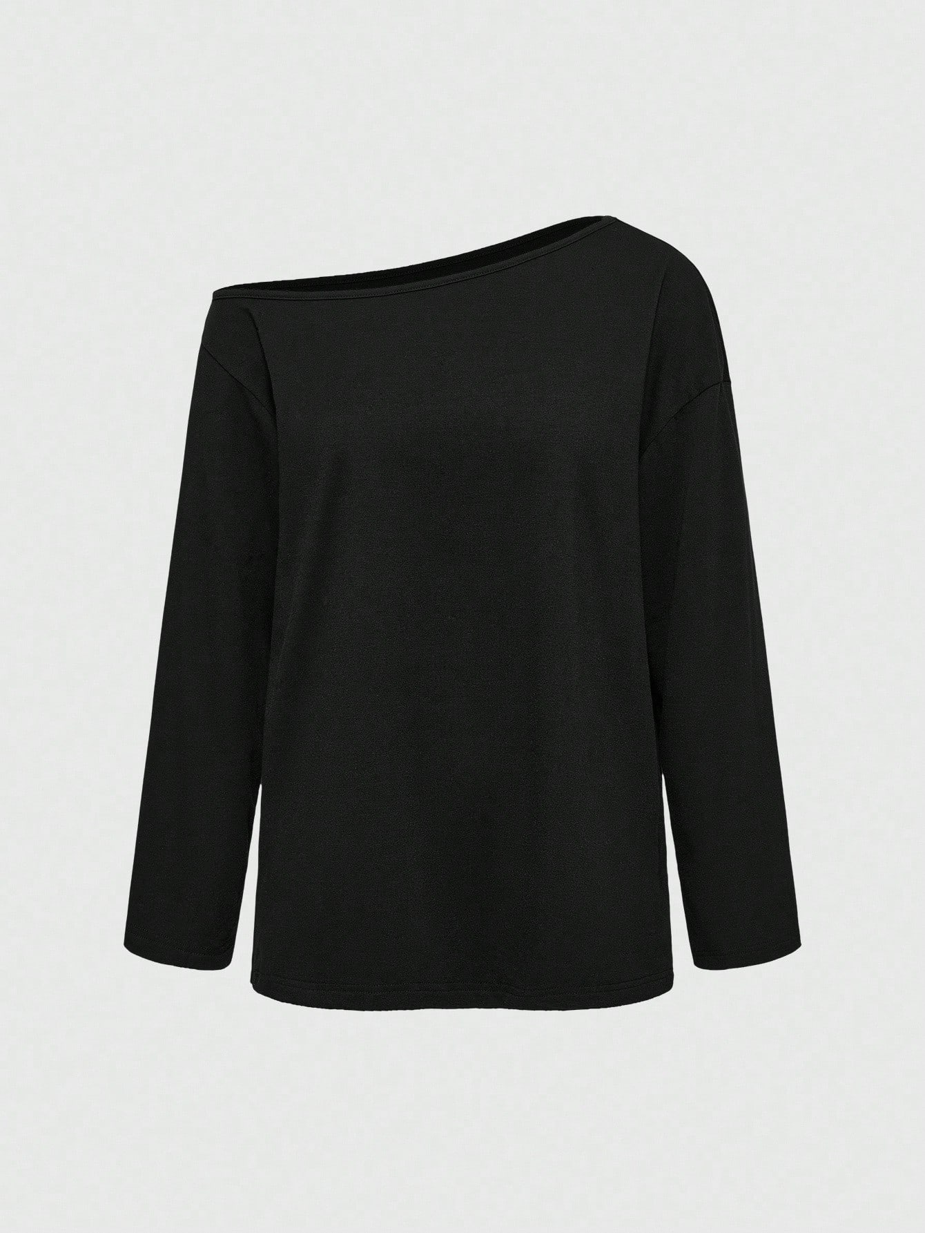 Grunge Punk Camiseta básica de manga larga, holgada y de algodón negro sólido con hombro asimétrico sexy para mujeres
