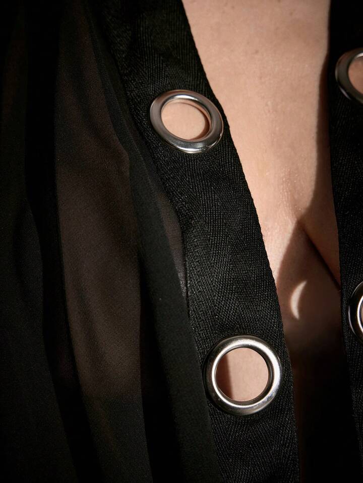Grunge Punk Top de mujer con cuello profundo drapeado y espalda descubierta