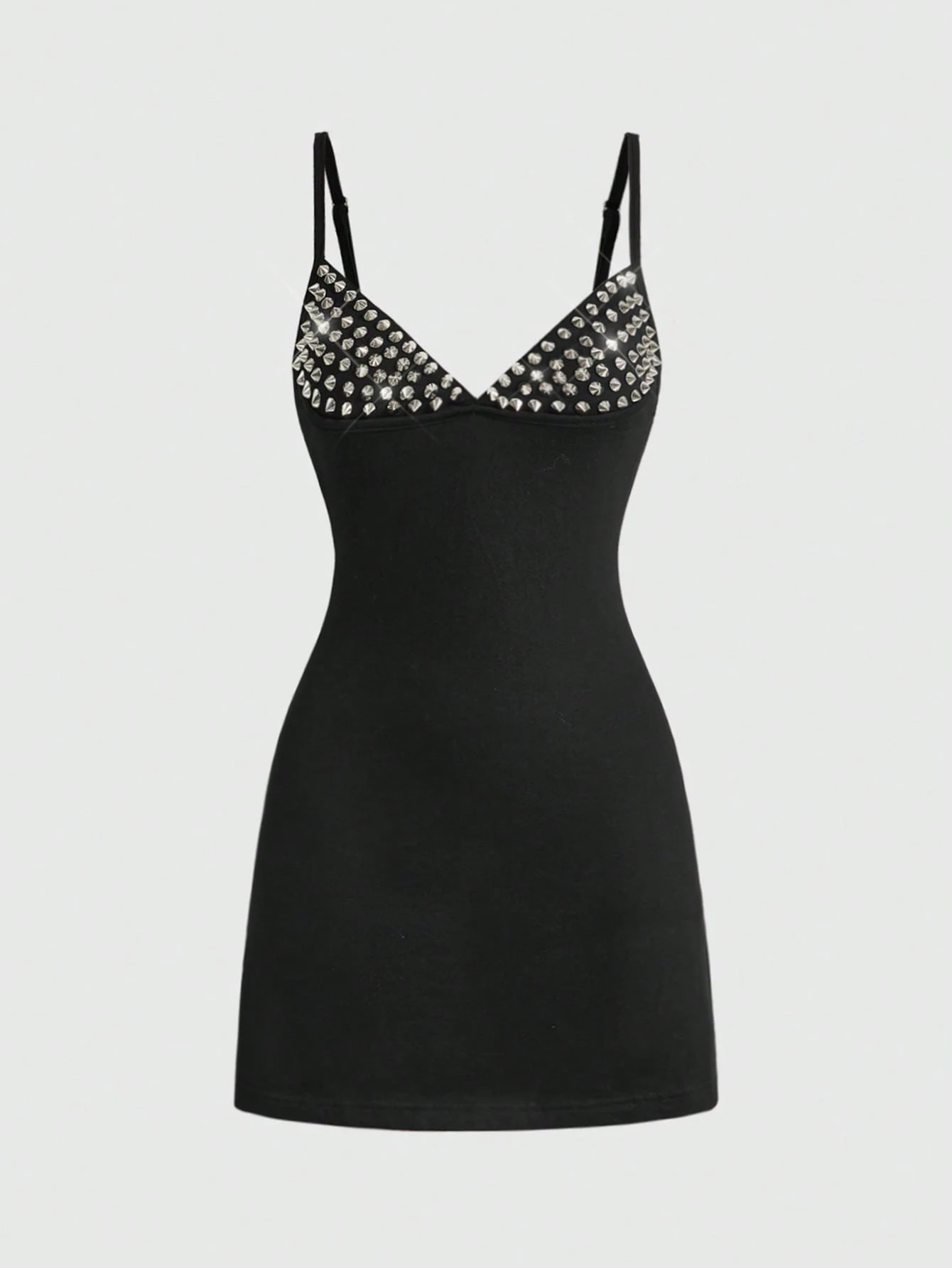Grunge Punk Vestido mini sexy de mujer de estilo punk oscuro con remaches y patchwork para Halloween