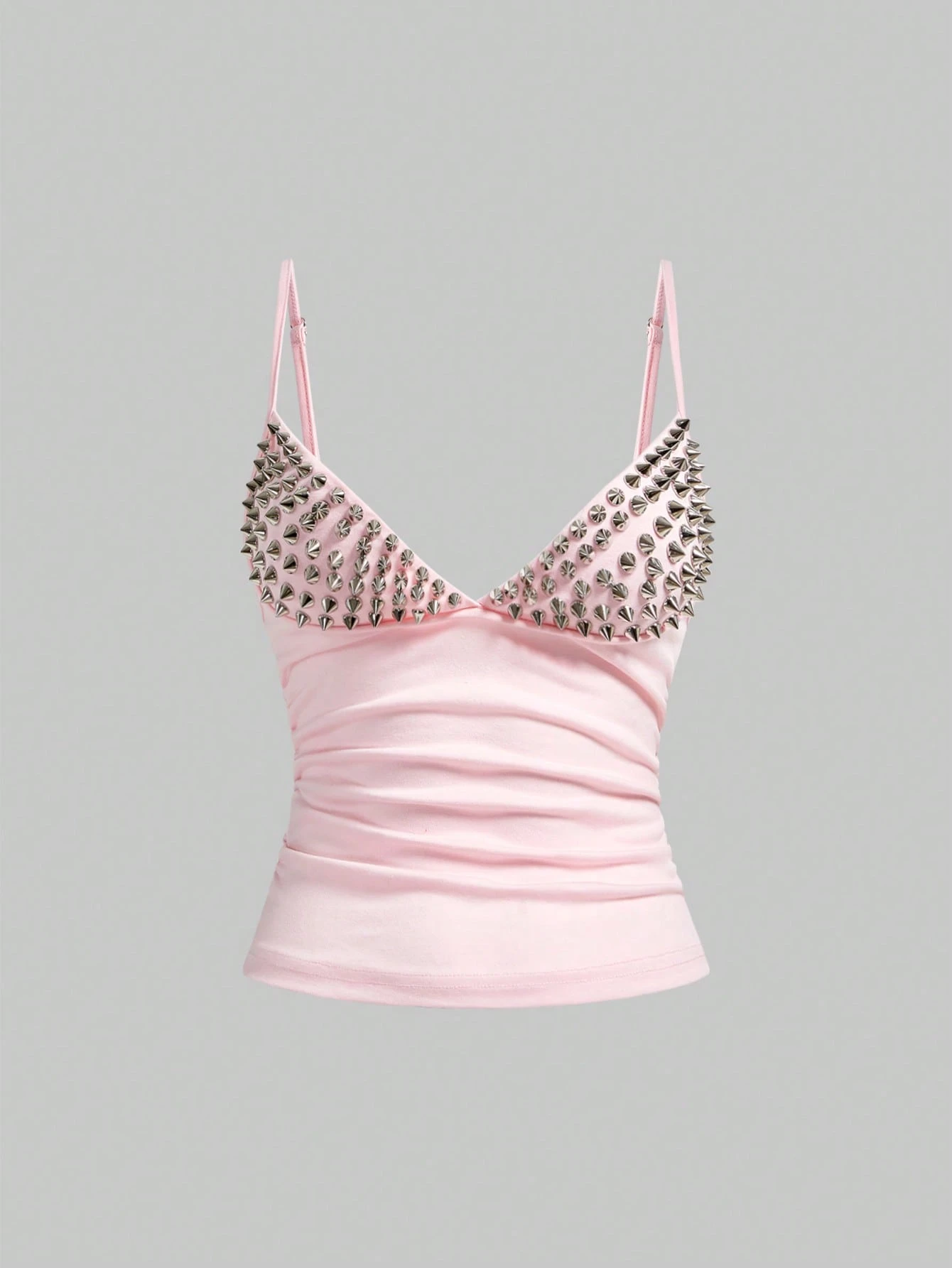 Grunge Punk Top de mujer sexy de estilo punk oscuro con remaches y patchwork para Halloween