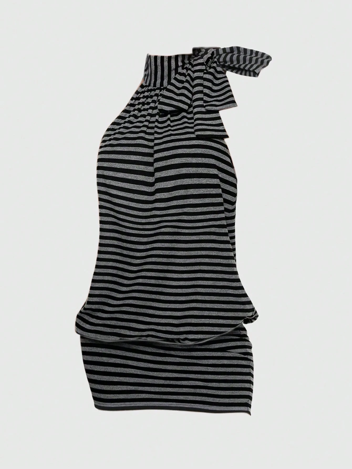 Grunge Punk Vestido de cóctel mini ajustado con contraste de color a rayas, lazo cruzado y escote halter sexy