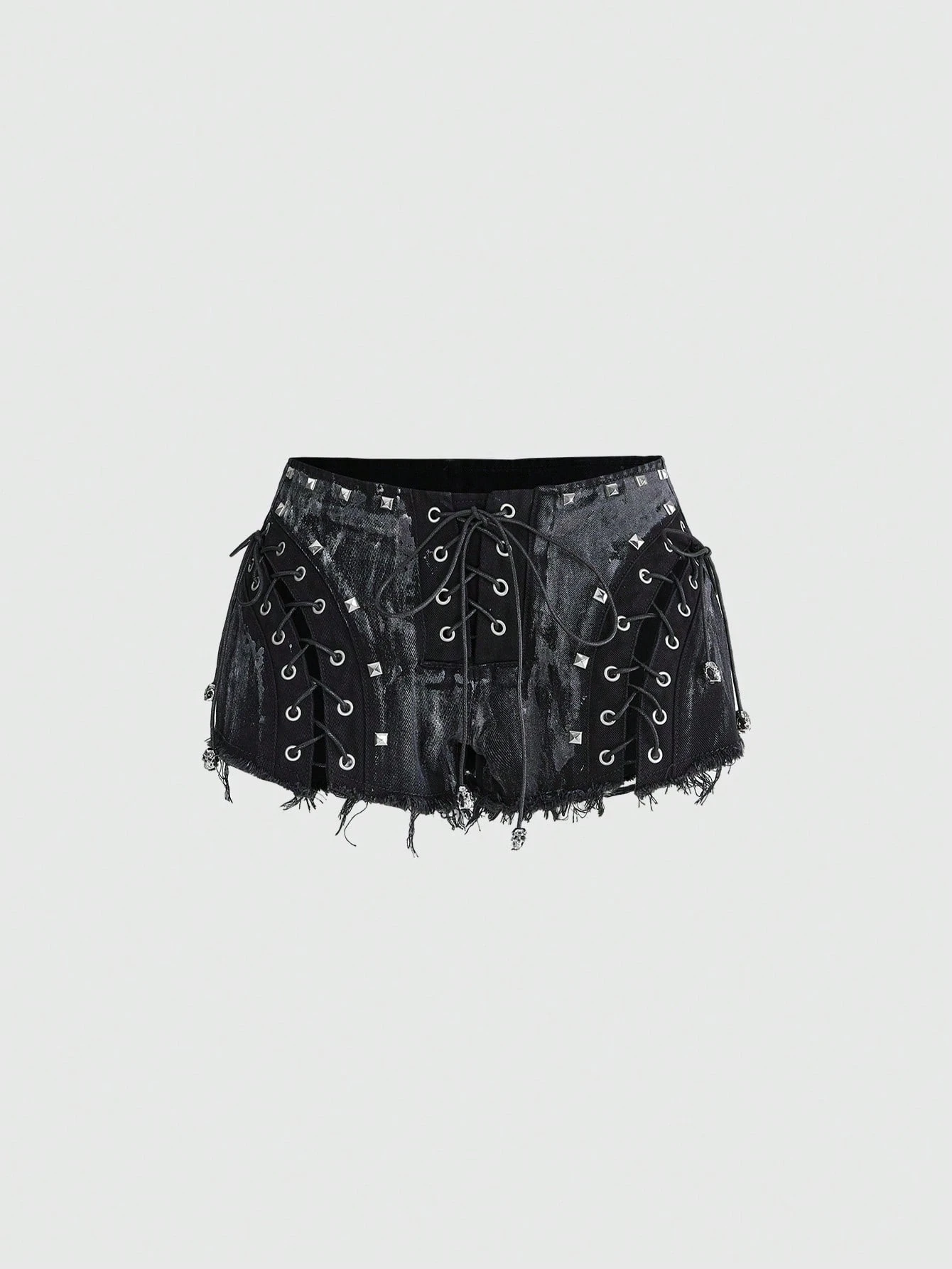 Grunge Punk Shorts vaqueros cortos con efecto desgastado, cintura baja, cordones y diseño metálico de calavera sexy