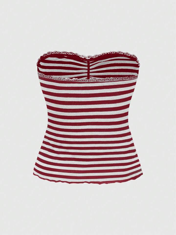 Grunge Punk Top ajustado elástico para mujer con volantes, lazo y estampado de leopardo con borde de encaje, apropiado para vacaciones