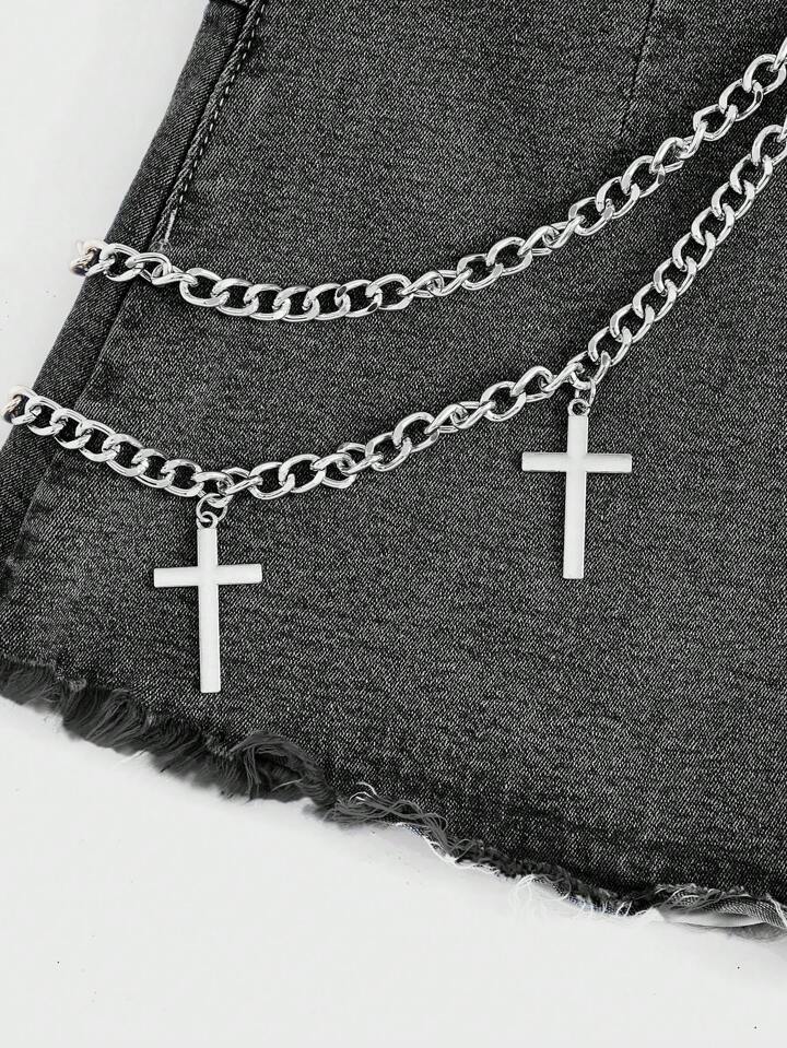 Grunge Punk Minifalda de mezclilla con estampado de eslogan, tela de araña, PU, cruce en cruz y cintura súper baja, estilo sexy Y2K gótico para mujeres