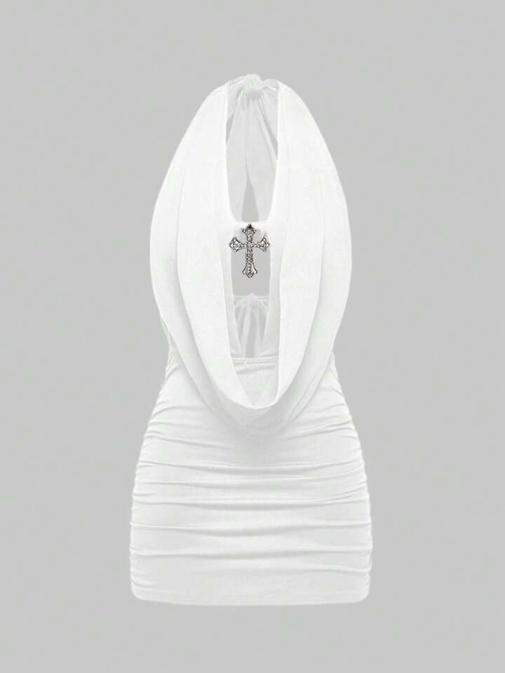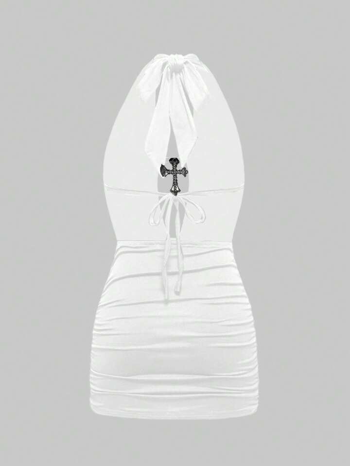Grunge Punk Vestido mini body-con con espalda descubierta, cuello de halter y colgante sexy estilo Y2K para mujeres