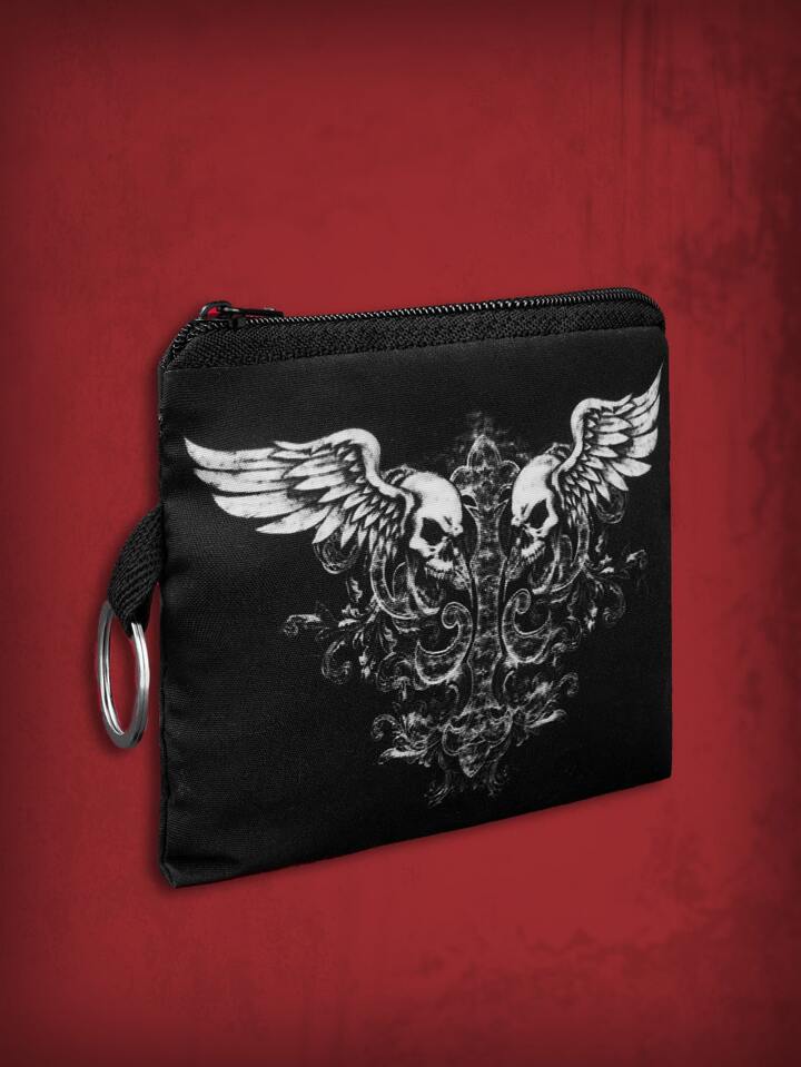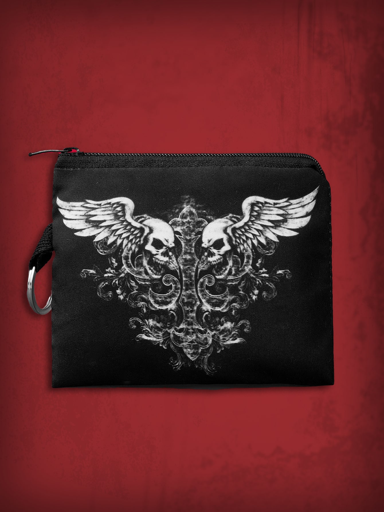 Grunge Punk Monedero con estampado de cráneo negro cremallera