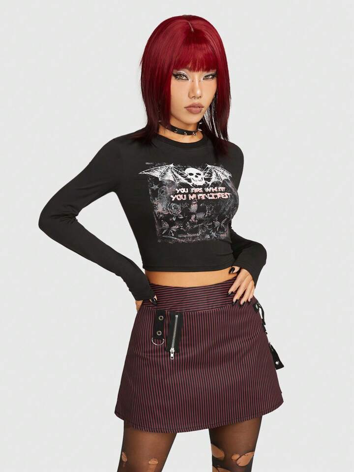Grunge Punk Camiseta crop con estampado de cráneo y letra