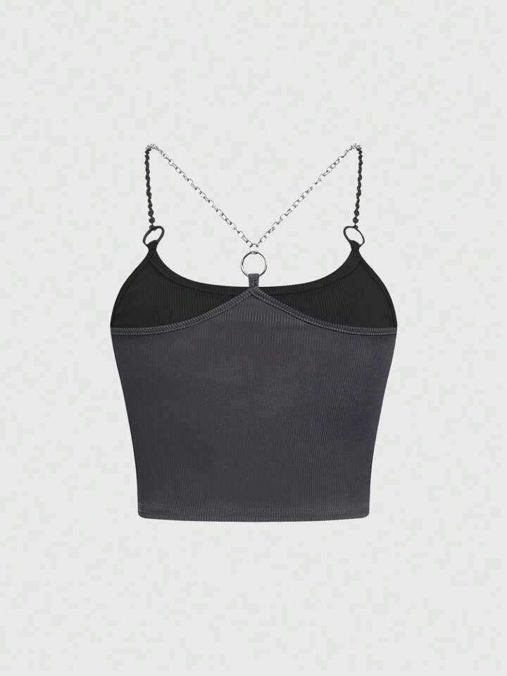 Grunge Punk Top de tirantes estampado de cráneo con cadena