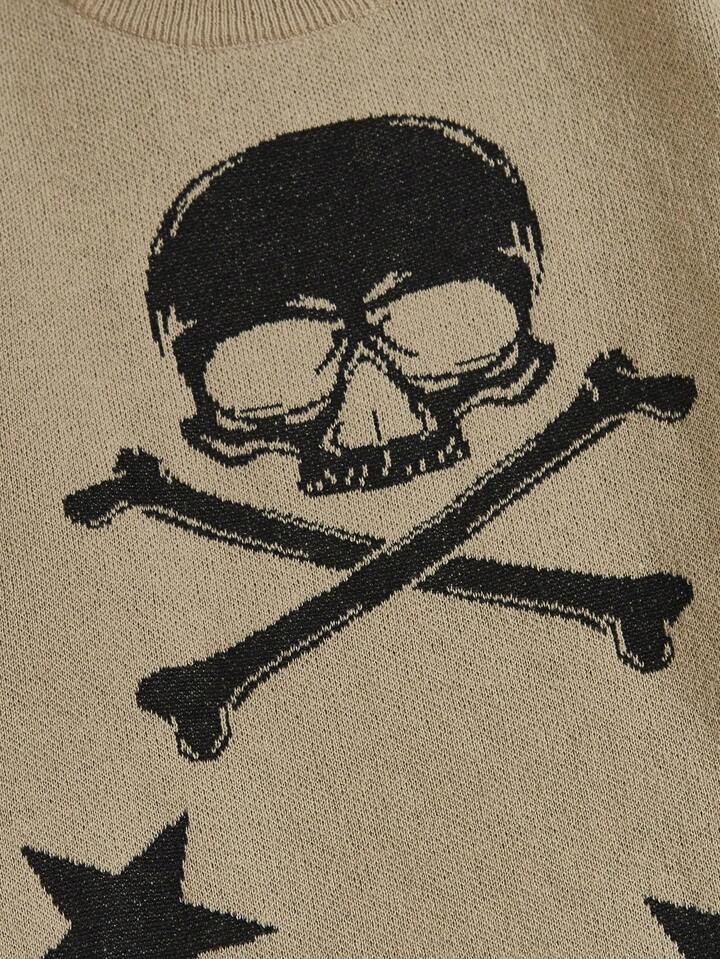 Grunge Punk Jersey de cráneo & con patrón de estrella de hombros caídos