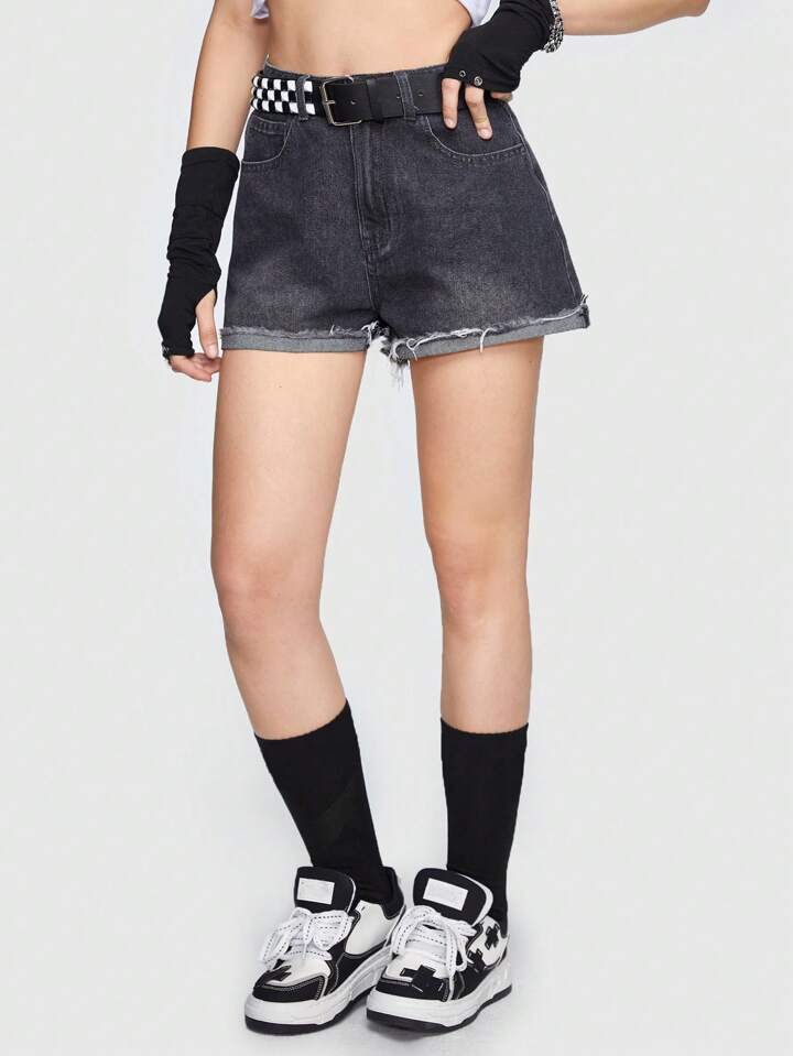 Grunge Punk Shorts en mezclilla con slogan ojo con estampado bajo crudo