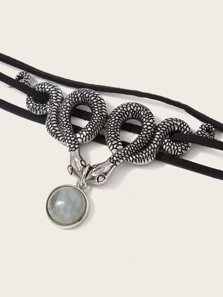 Grunge Punk Gargantilla con diseño de serpiente con accesorio oval