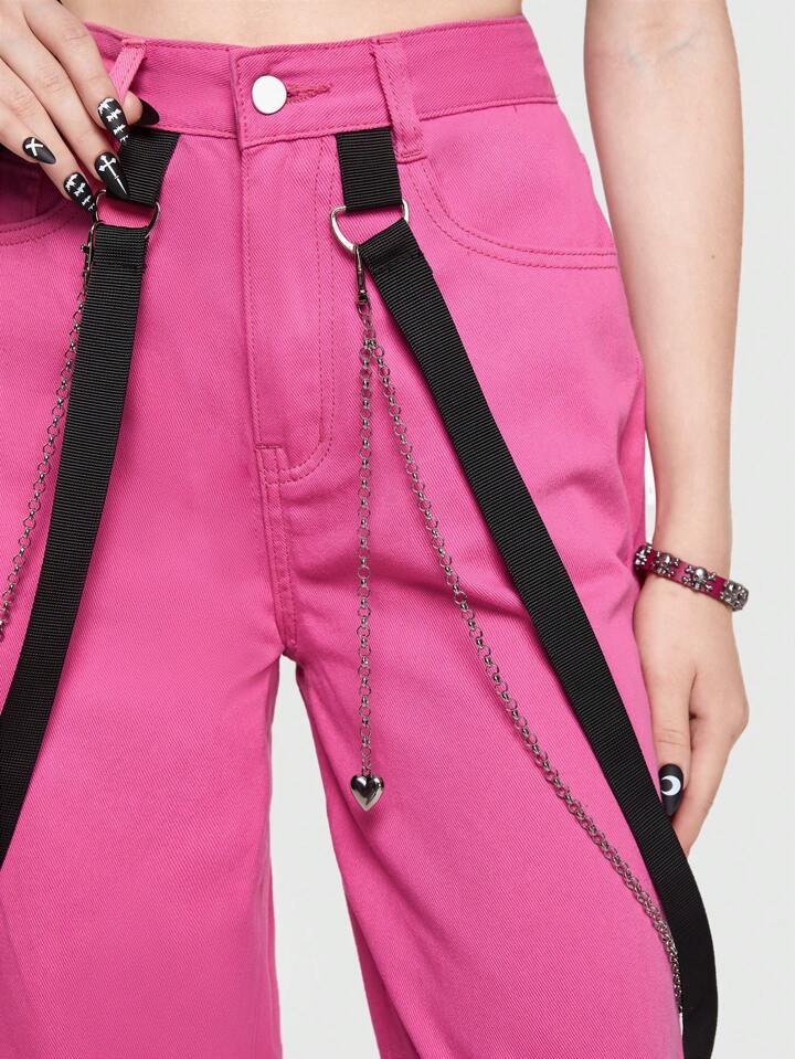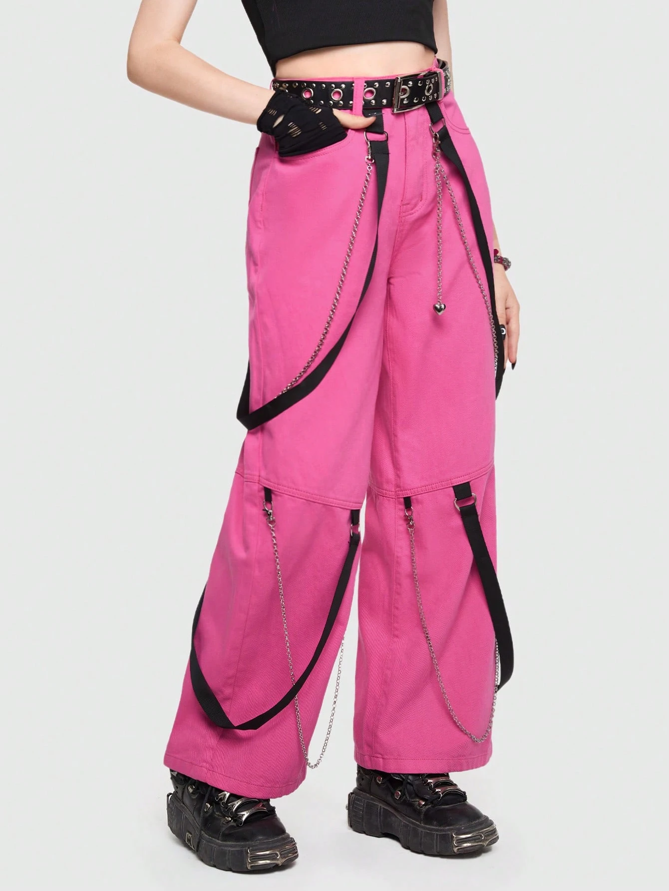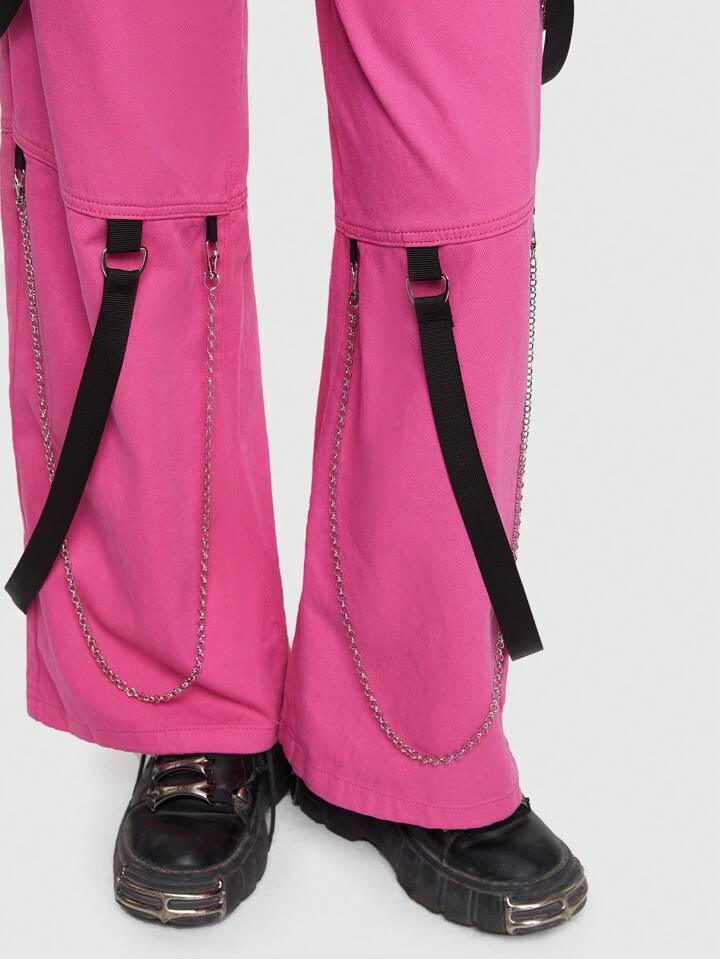 Grunge Punk Jeans cargo unicolor con diseño de cadena